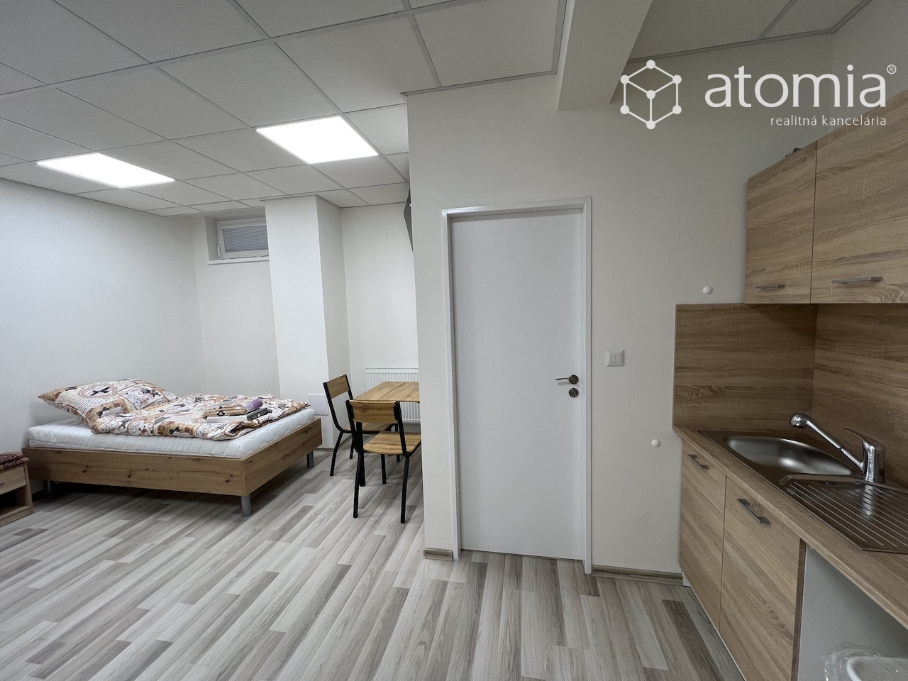 Ponúkam na prenájom apartmán vhodný pre firmy ako ubytovanie pre zamestnanca. Apartmán je plne zariadený - posteľ, skriňa, stôl a stoličky, kuchynská linka (bez spotrebičov), TV. Dispozične je rozdelený na izbu a kúpeľňu so sprchovacím kútom a WC. Priestor je úplne zrekonštruovaný. Apartmán sa nachádza v suteréne budovy s jedným oknom. Apartmán sa nachádza na ulici Južná trieda v Košiciach. Cena: 320€/mesačne + zálohová platba za energie 80€/mesačne. Apartmán je vhodný pre max. 2 osoby (zamestnancov firmy, cena pri 2 osobách +30€/mesiac). Voľný a obhliadky možné od 01.12.2025. Preferovaný je dlhodobý prenájom. Požadovaný 2-mesačný depozit. V prípade záujmu volajte na tel. č. 0903 904 901.