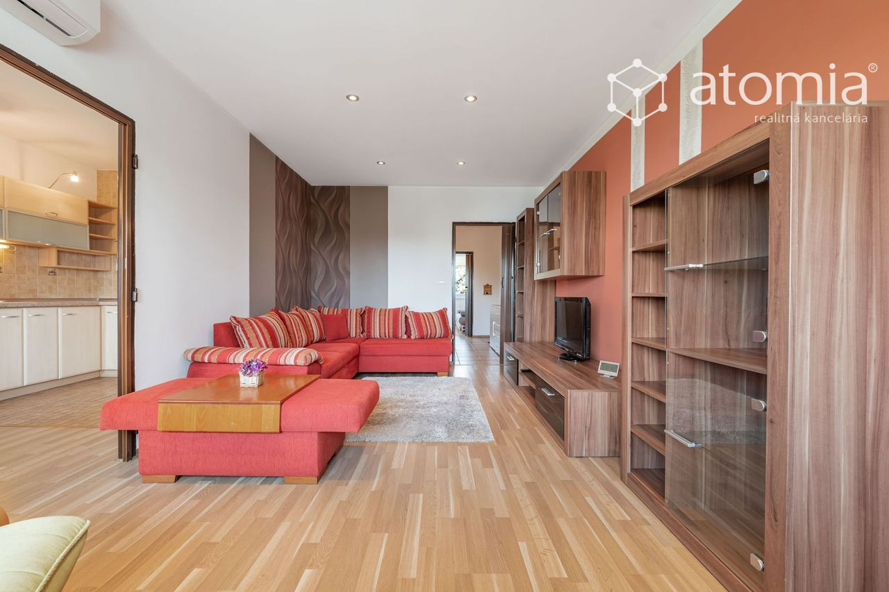Dispozícia bytu: predsieň, chodba s pracovným kútom, obývacia izba, kuchyňa - vstup je z chodby a aj z obývacej izby, dve nepriechodzie spálne, kúpeľňa, samostatná toaleta, komora na spoločnej chodbe pred bytom, pivnica v suteréne. Vstup do jednotlivých izieb bytu vrátane kuchyne, kúpeľne a toalety je samostatný. Z obývacej izby je vstup na loggiu. Orientácia spální je na severovýchod, obývacia izba a kuchyňa je orientovaná na juhozápad. Byt je presvetlený, slnečný, teplý v zime a príjemný v lete - aj vďaka klimatizácii, ktorá je v byte inštalovaná.