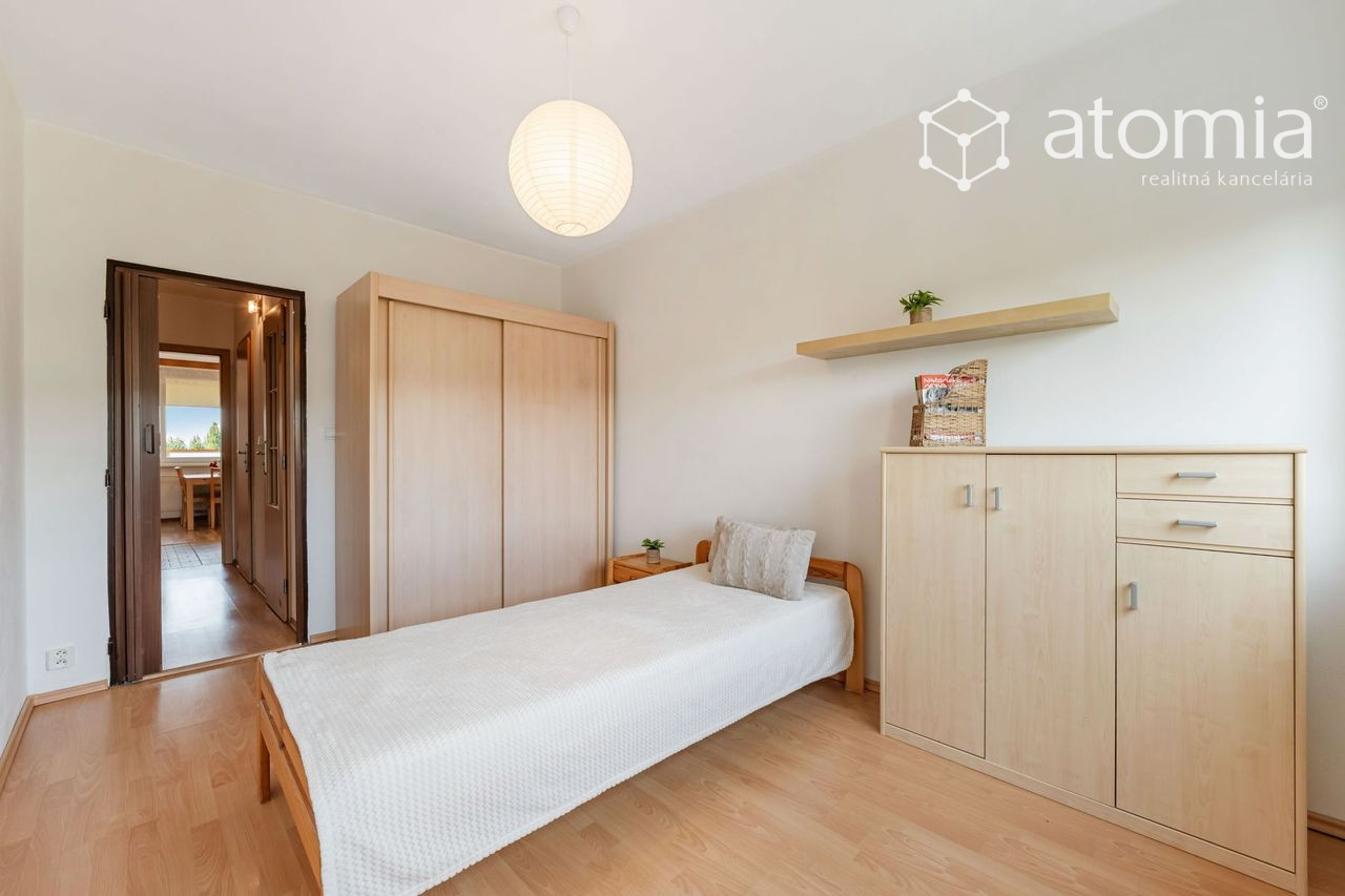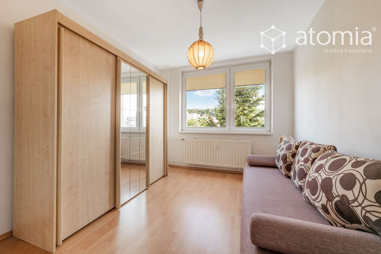 Obývacia izba je priestranná s výstupom na loggiu a vstupom do kuchynskej časti. Zariadenie obývacej izby je: sedacia súprava, kreslo, konferenčný stolík a televízor. Dve spálne, ktorých využitie si nájomník so zachovaním terajšieho nábytku môže upraviť podľa vlasných potrieb - detská izba, manželská spálňa. Terajšie využitie je ako dve samostatné spálne alebo spálňa a hosťovská izba, ďalšia pracovňa, šatník. Zariadenie spální: 1. Spálňa - jednolôžko, priestranná dvojdverová skriňa, nočný stolík, komoda, polica. 2. Spálňa - rozťahovací sedací gauč - dvojlôžko, priestranná trojdverová skriňa so zrkadlom.