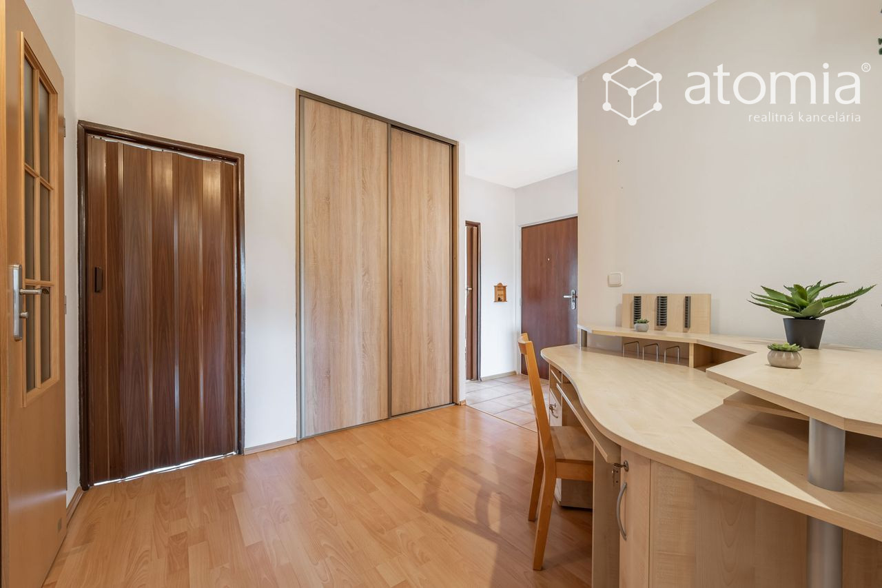 Licencovaný realitný maklér ALENA KATONOVÁ a ATOMIA RK Vám ponúka príjemné bývanie vo veľmi peknom kompletne zrekonštruovanom a príjemnom 3 izbovom byte + pracovný kút v priestoroch chodby Pražský typ bytu sa nachádza v lokalite sídliska Nad jazerom ul. Sputnikova. Má úžitkovú výmeru 70 m2 (byt + kumbál) + 7 m2 loggia a nachádza sa na 5. p. / 7. p. . Výťah stojí na poschodí.