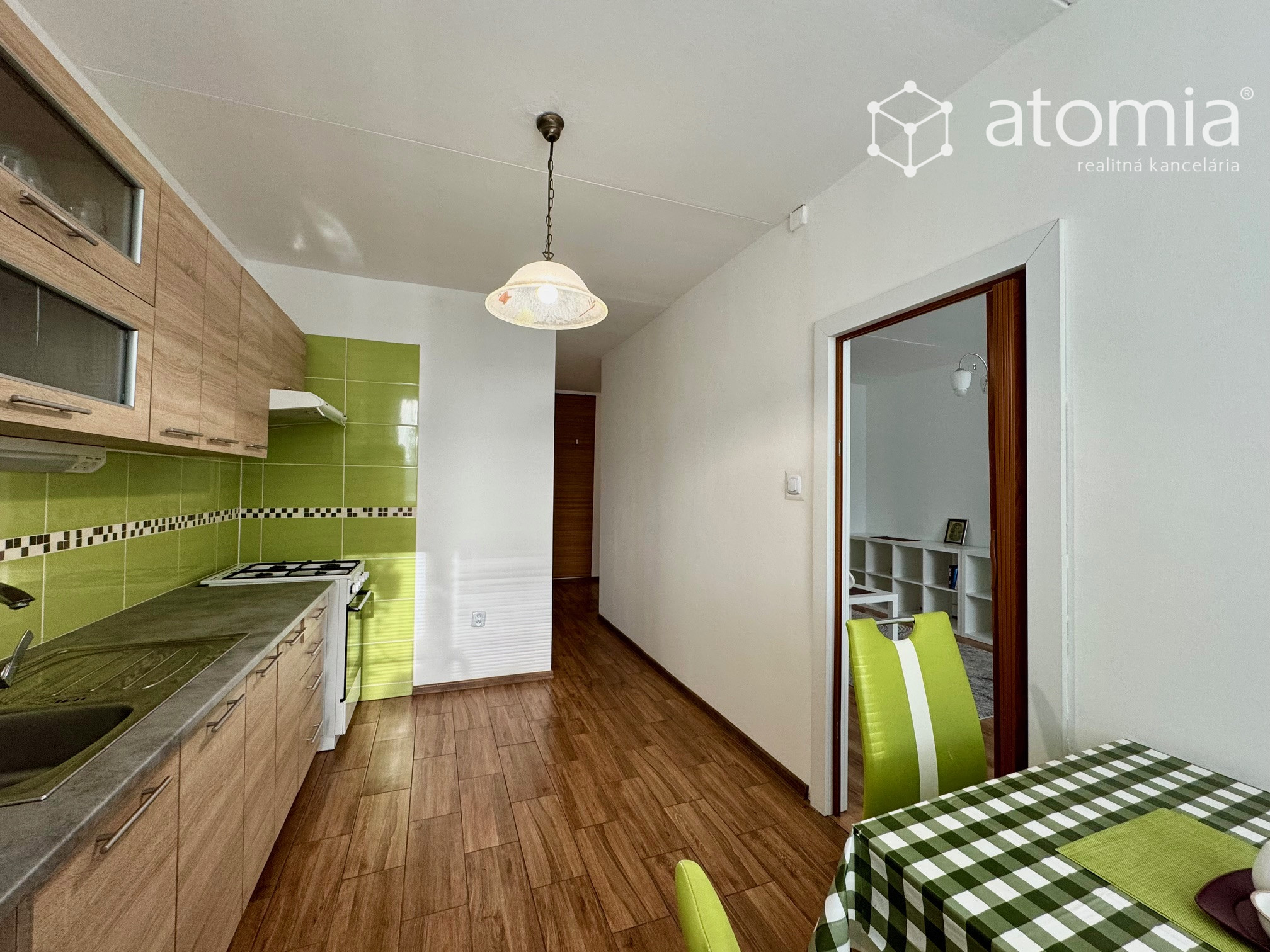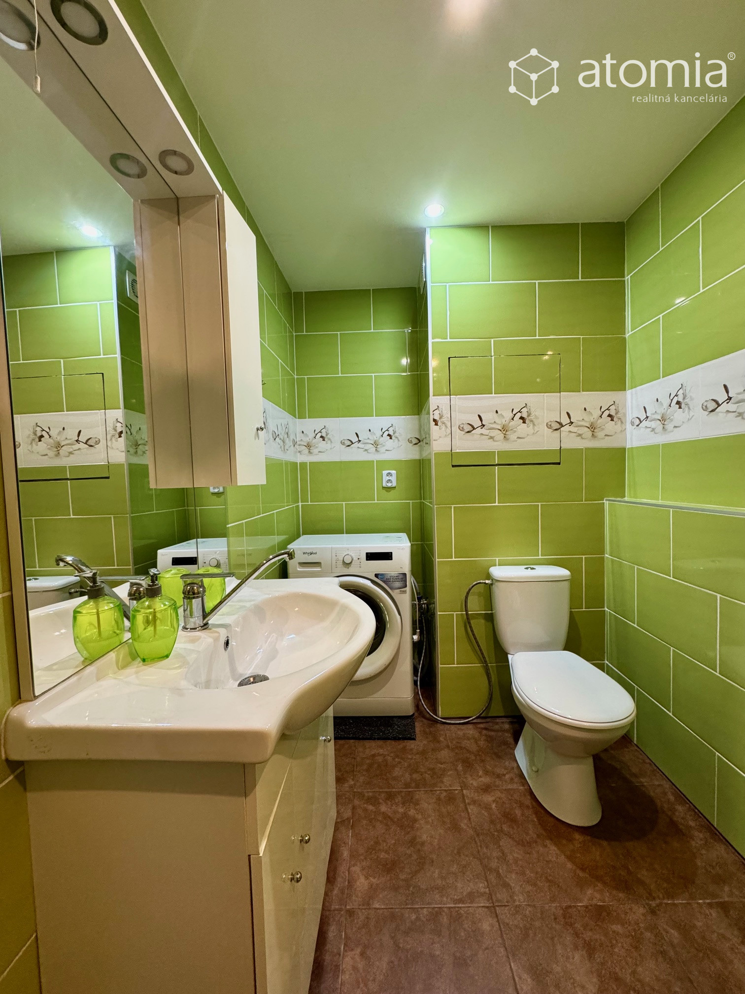 Byt je po kompletnej rekonštrukcii. Prenajíma sa zariadený - viď foto. Má plastové okná, murované jadro, kúpeľňu spojené s WC, plávajúcu podlahu v izbe, dlažbu v kuchyni, predsieni a jadre. Kuchyňa - kuchynská linka na báze dreva s osadeným nerezovým drezom s pákovou batériou, plynový sporák s elektrickou rúrou, digestor, chladnička s mrazničkou, jedálenský stôl so stoličkami. Izba - rozkladacia posteľ, úložný policový priestor, televízor, konferenčný stolík. V predsieni sa nachádza komoda, vstavaná skriňa. V kúpeľni sa nachádza sprchový kút, umývadlo osadené v skrinke so zrkadlom, toaleta, pračka. Uzatvorená loggia tenkostenným rámovým systémom.