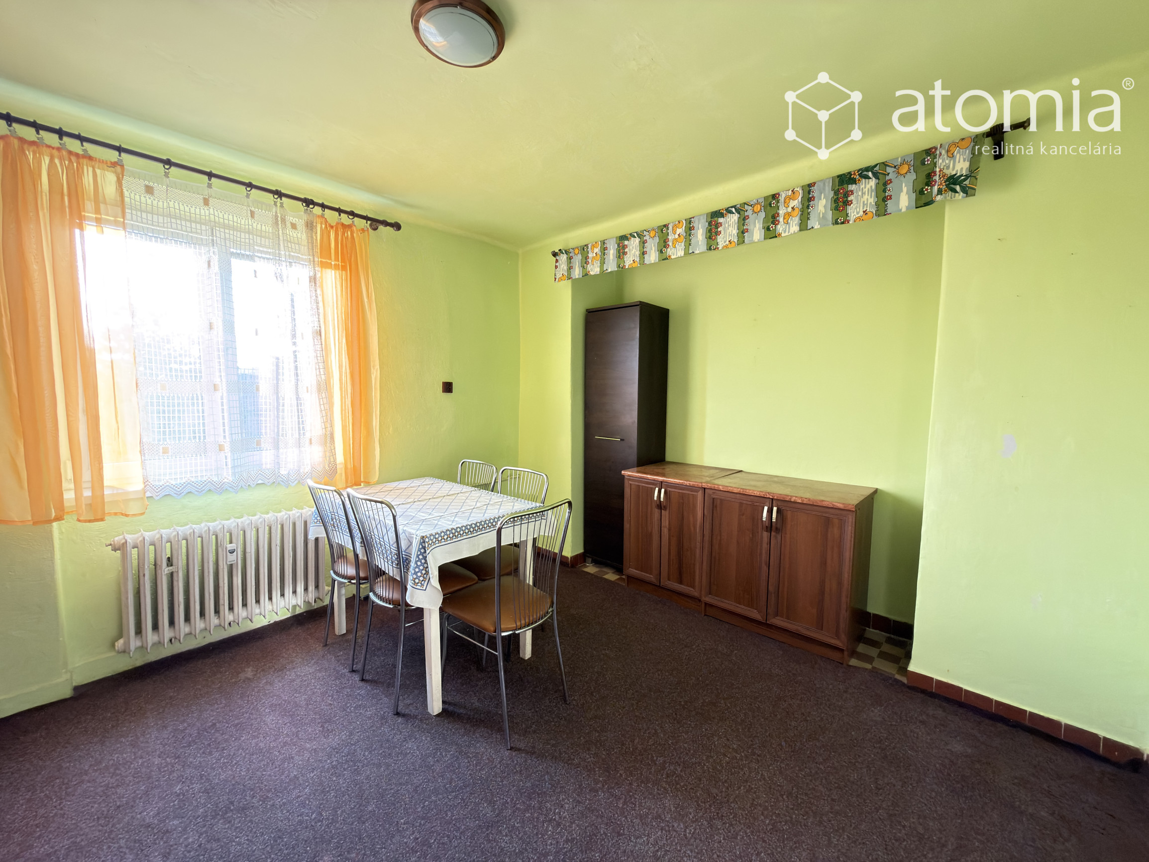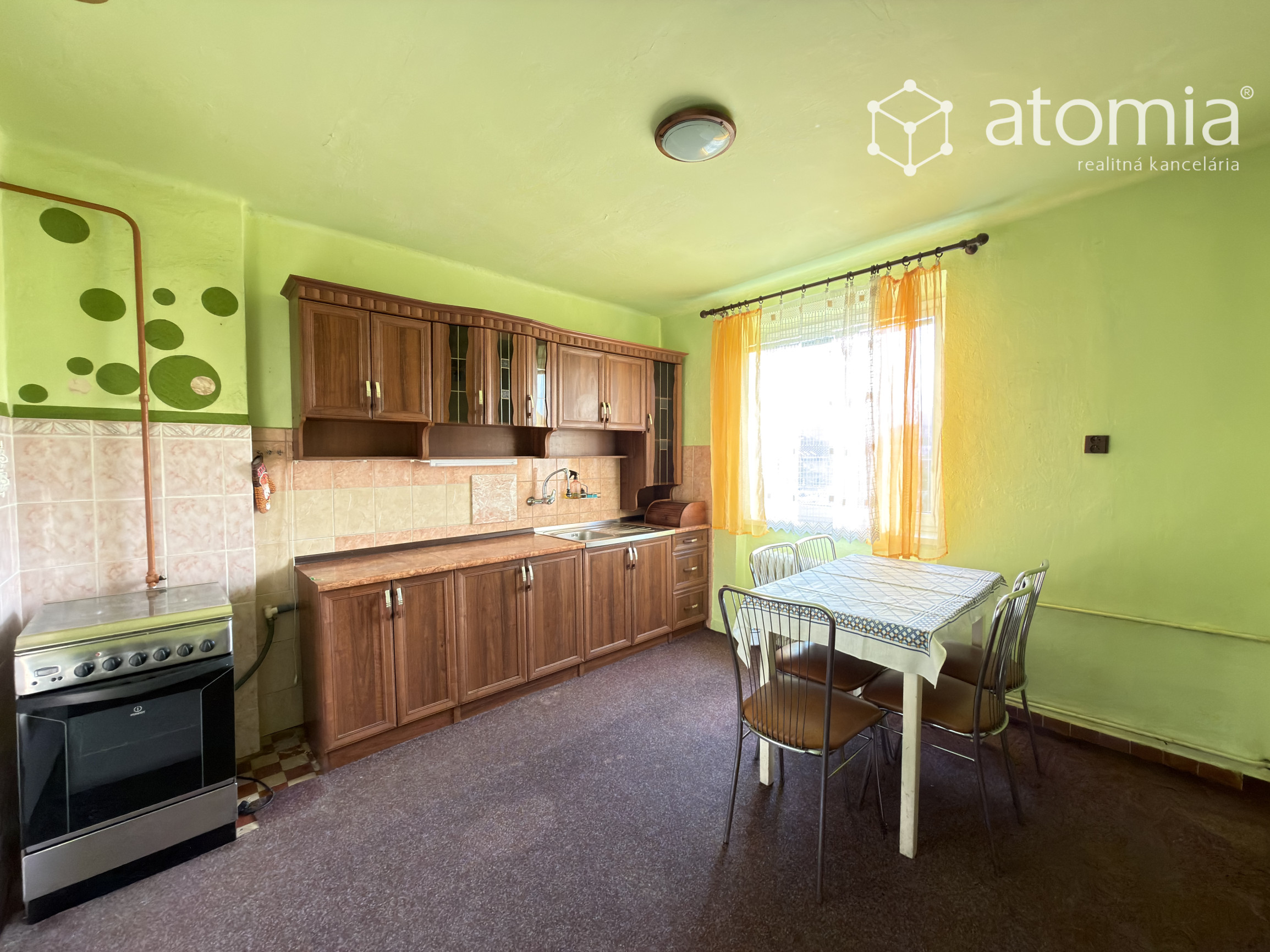 - Čiastočne zariadený: kuchynská linka, plynový sporák s rúrou