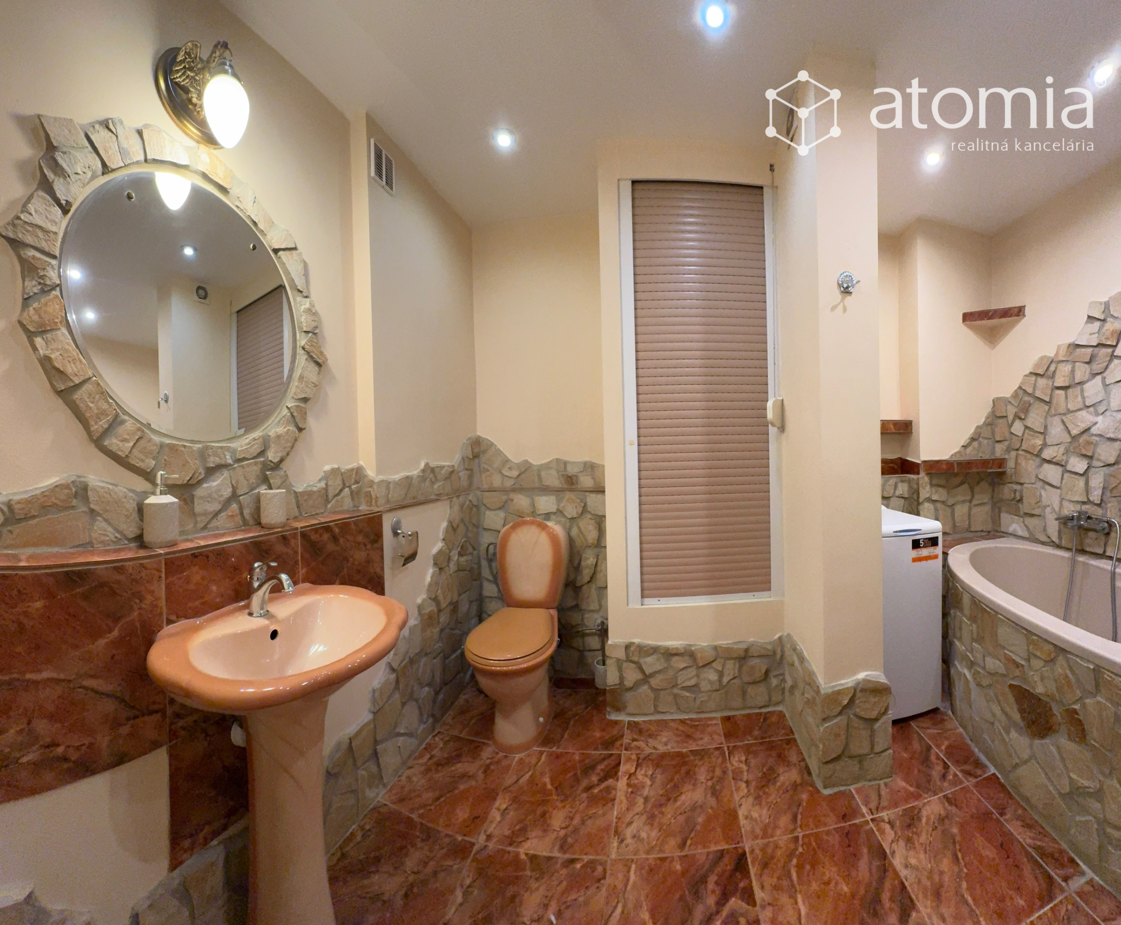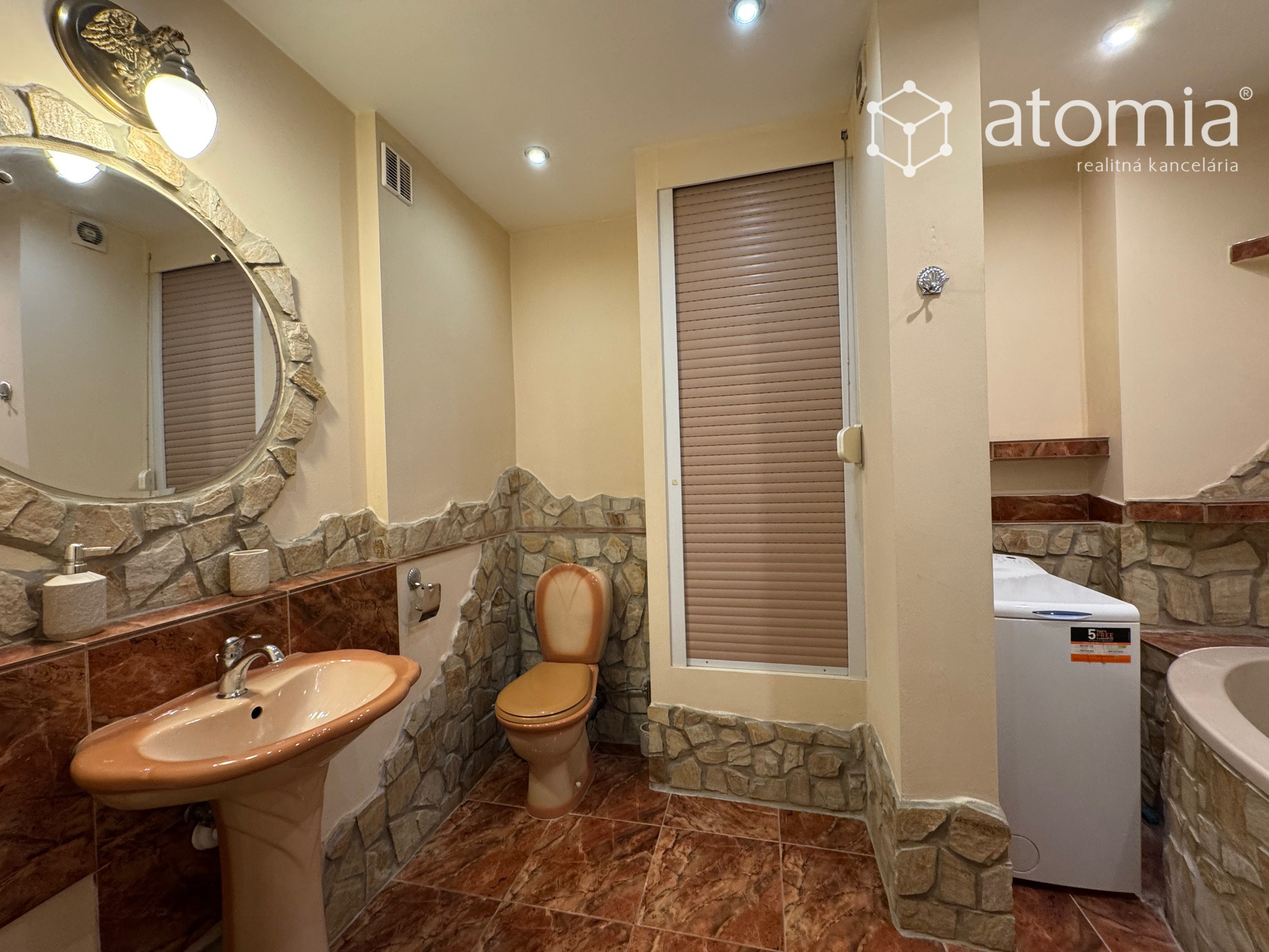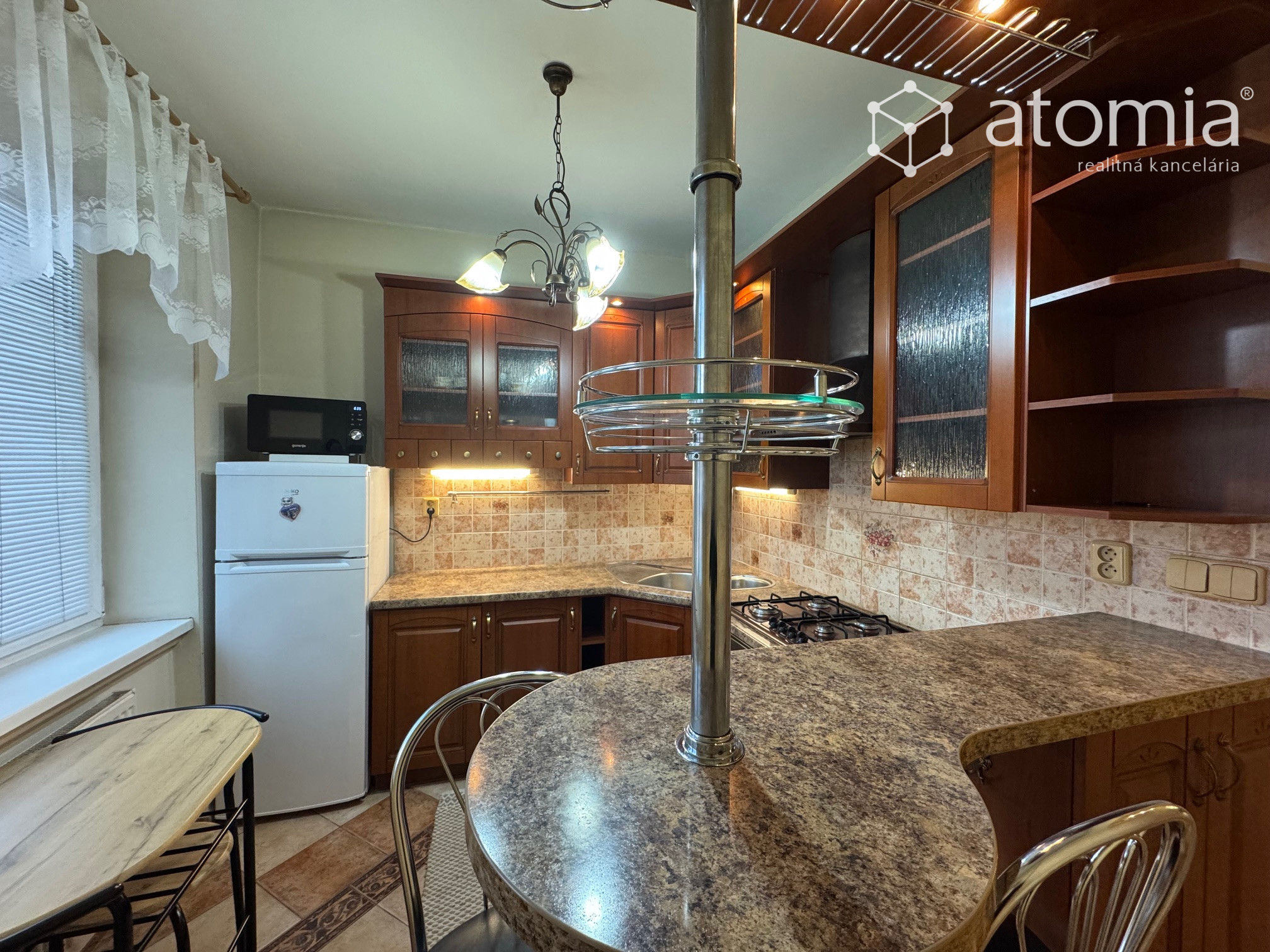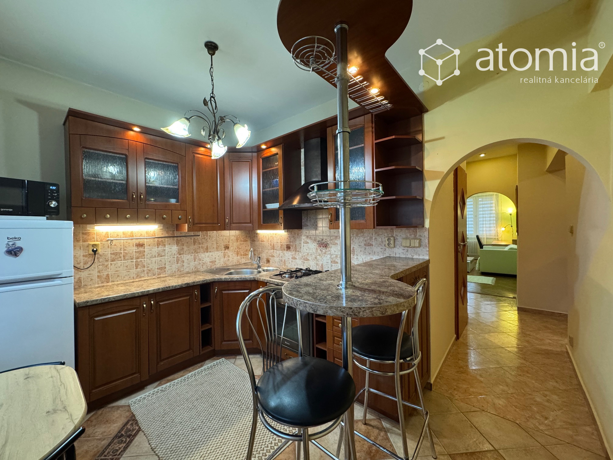 Byt je po kompletnej rekonštrukcii a veľmi dobre udržiavaný. V byte sú plastové okná so žalúziami, menené interiérové dvere. Murované jadro, nové rozvody vody, odpadu, elektriny. Podlahy - repasované bukové parkety v izbách, v kuchyni, kúpeľni s toaletou a chodbe je keramická dlažba a obklady. V kúpeľni je rohová vaňa, umývadlo, zrkadlo, pračka. Toaleta je súčasťou kúpeľne. V kuchyni je nová kuchynská linka do tvaru U so svetelnou rampou, barovým pultom a s dostatkom úložných priestorov. V kuchynskej linke na báze dreva je osadená vstavaná plynová varná doska, elektrická vstavaná rúra, nerezový drez s pákovou batériou. Byt sa prenajíma zariadený - viď. Foto.