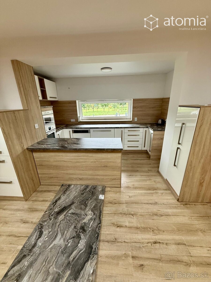 Súčasťou je kuchynská linka so spotrebičmi, interiérové dvere, podlahy, obklady aj plynový kotol.