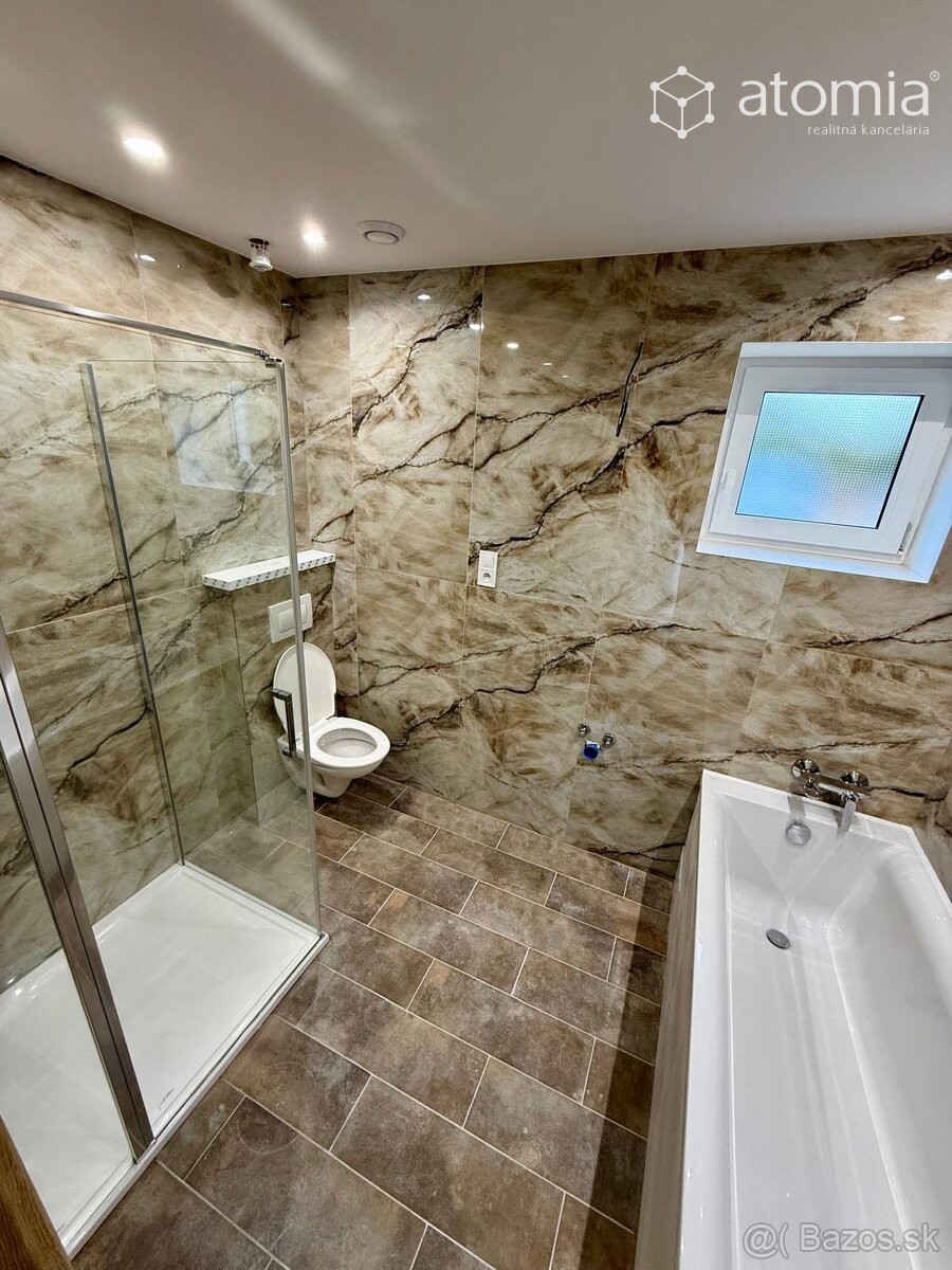 - kúpeľňa s vaňou a sprchovacím kútom