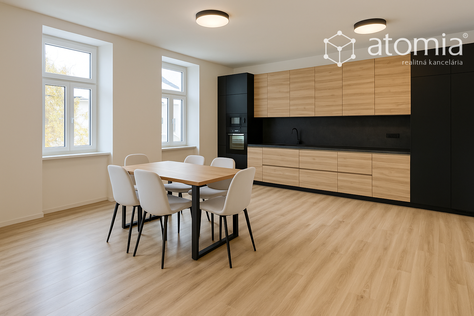 - Kuchyňa so zabudovanými spotrebičmi: umývačka riadu, indukčná varná doska, rúra, mikrovlnka