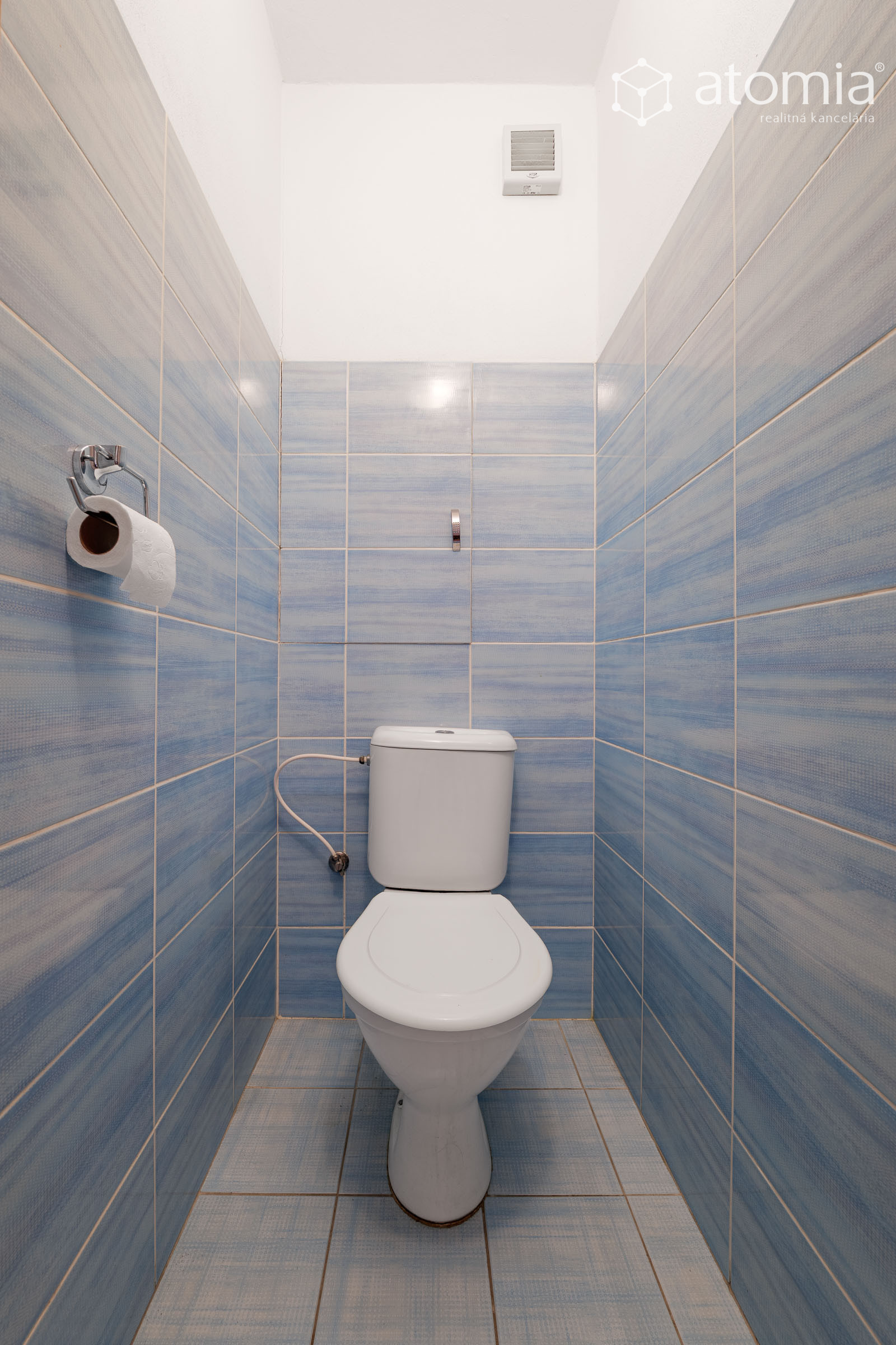 Kúpeľňa a toaleta sú samostatné miestnosti a sú presvetlené sklobetónkami. V kúpeľni sa nachádza akrylátová vaňa, umývadlo osadené v skrinke, zrkadlo. V toalete je WC kombi - voľne stojace WC so splachovacou nádržkou. Menené stúpacie vedenie.