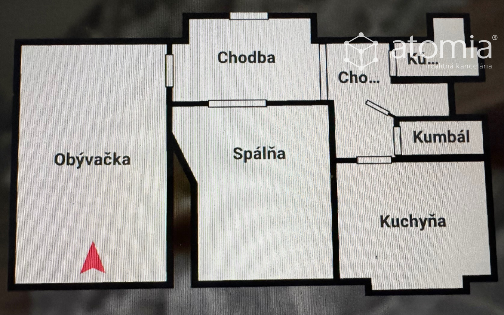Pozrite si aj 2D, 3D pôdorys bytu a potrebné rozmery si odčítajte z 3D pôdorysu (plocha miestností je znázorňovaná bez plôch - vstavanej skrine, kuchynskej linky, vane). 2D pôdorys - viď foto.