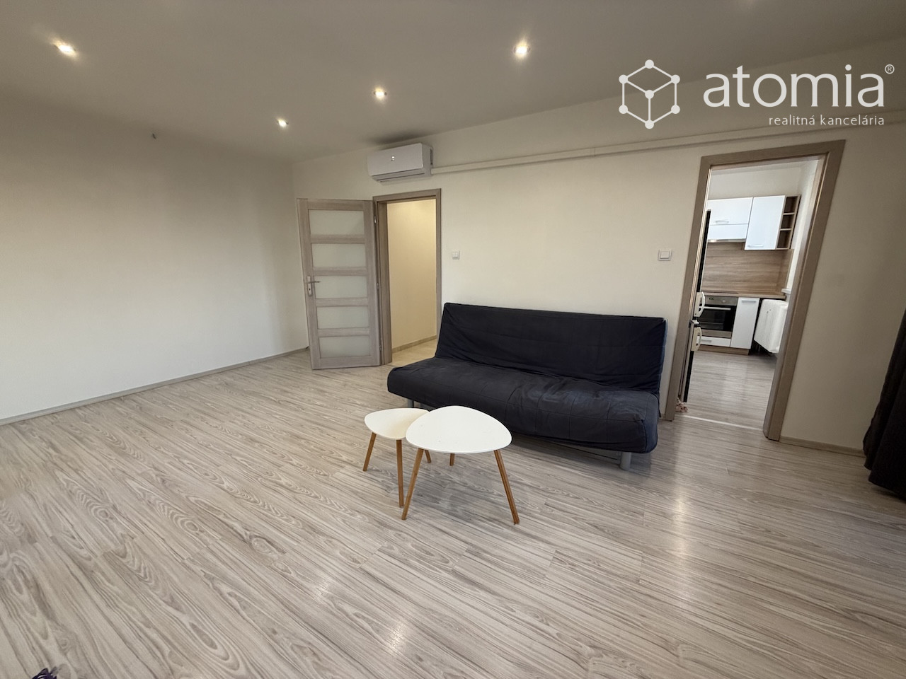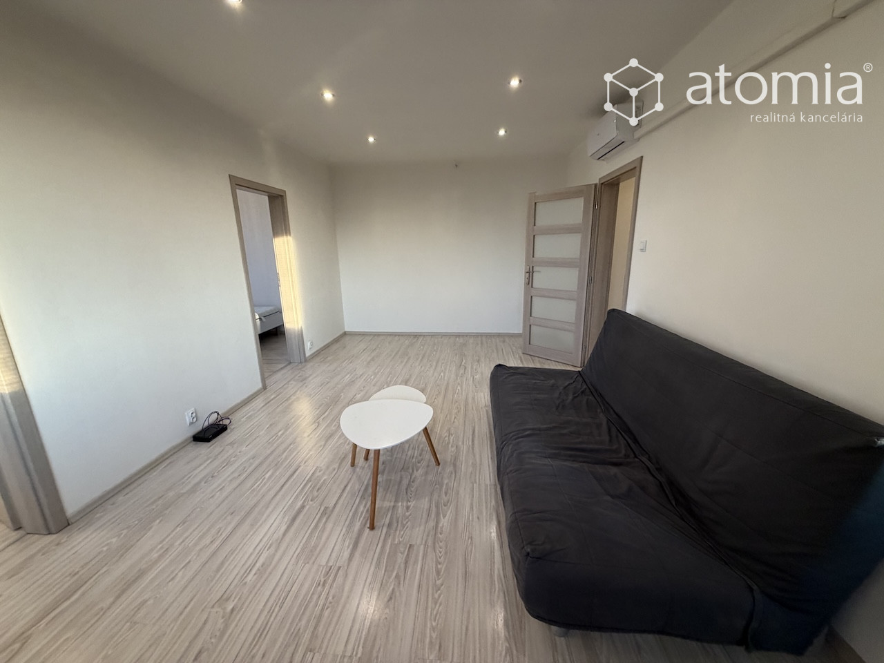 Dispozične je byt rozdelený na 2 neprechodné izby, obývačku, kuchyňu, kúpeľňu a WC. V kúpeľni je vaňa. Byt má taktiež klimatizáciu a z obývacej izby je výstup na loggiu. Obývacia izba je dostatočne priestranná na umiestnenie jedálenského stola. Byt je kúpou ihneď voľný.