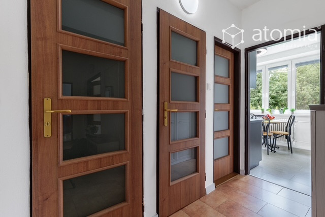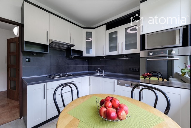 Completely renovated in recent years, last refresh in 2024 (painting, wallpaper). New electrical wiring, plumbing, and waste. Brick-built bathroom and toilet. Custom kitchen with built-in Baumatic appliances (gas hob, oven, dishwasher, hood). Laminate floors, tiles, plastic windows with sun blinds. Air conditioning in the living room. Security entrance door, replaced interior doors. Fire-resistant main door with safety lock.