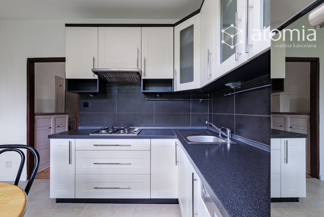 Vo Vašej kuchyni sa nemusíte báť, že sa po namáhavom celom dni ešte nabeháte...stačí pár krokov a všetko máte poruke na prípravu dobrej večere. V kuchyni sa nachádza na mieru vyrobená kuchynská linka do tvaru L so vstavanými spotrebičmi zn. Baumatic - plynová varná doska, elektrická teplovzdušná rúra, digestor, umývačka riadu, závesná tyč na kuchynské pomôcky. V kuchynskej linke je osadený nerezový drez s odkladacím priestorom a s pákovou batériou. Zástena kuchynskej linky je keramická. Kuchynská linka má dostatok úložného a pracovného priestoru. Chladnička s mrazničkou zn. Samsung a stôl so stoličkami je súčasťou ceny nehnuteľnosti.