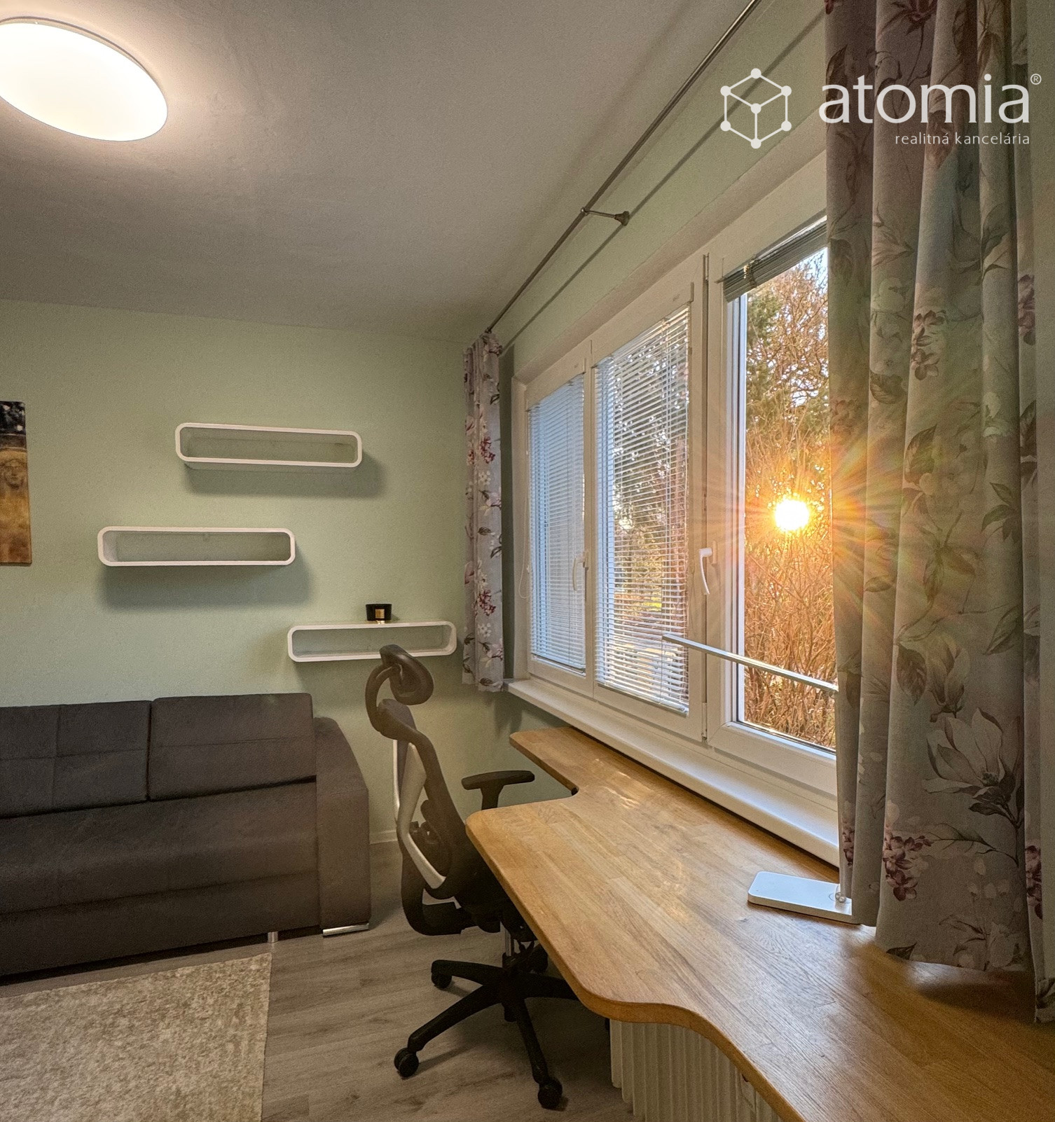 Byt je orientovaný na jzápad a má pekný výhľad na zeleň a do okolia obytného domu - nikomu sa nepozeráte do okien. Byt je presvetlený a príjemný v lete a aj v zime.