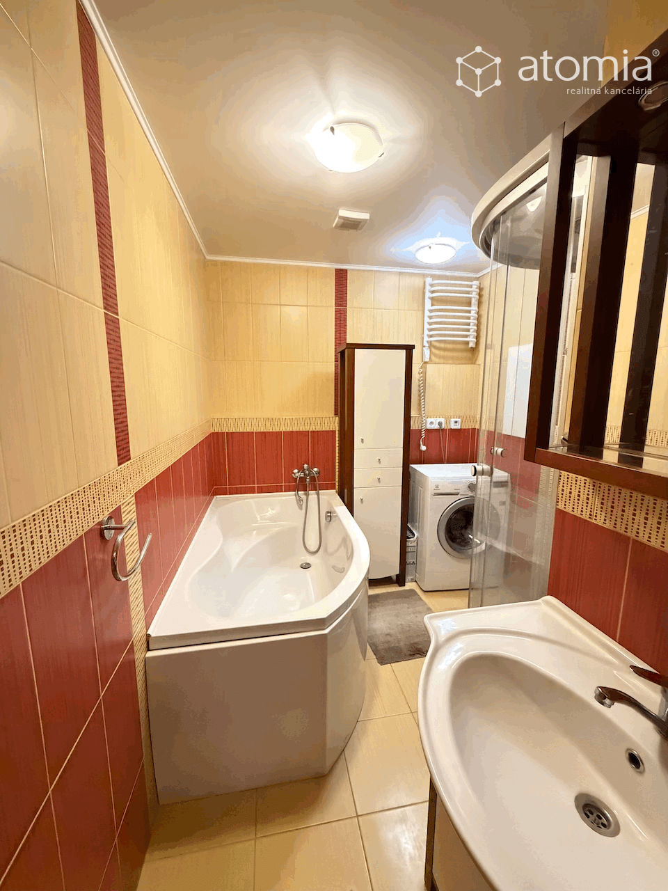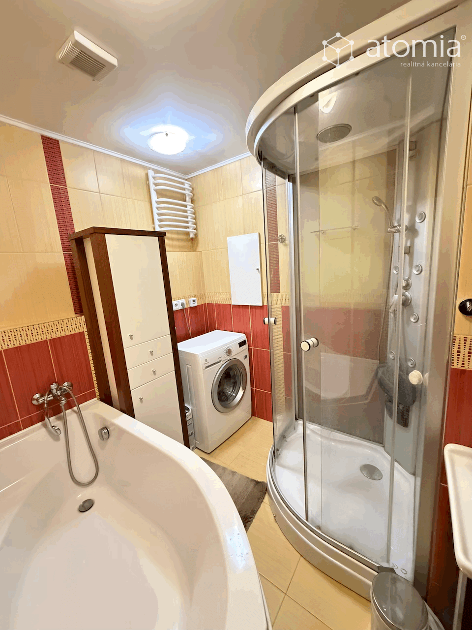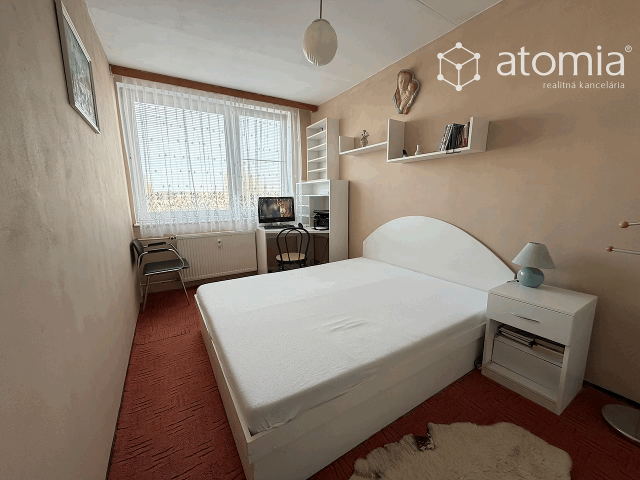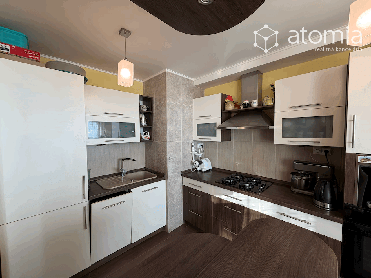 Byt o výmere 68m2 sa nachádza na výbornom 7. poschodí bytového domu a prešiel čiastočnou rekonštrukciou, ktorú zahŕňa: nové rozvody vody, odpadu a elektriny (okrem 2 izieb), plastové okná, vnútorné dvere, podlahy a dlažby, sanita, radiátory, murované jadro so zmenenou dispozíciou, kuchynská linka so vstavanými spotrebičmi (rúra, varná doska, mikrovlnná rúra, umývačka riadu, chladnička s mrazničkou) a vstavaná skriňa v spálni.