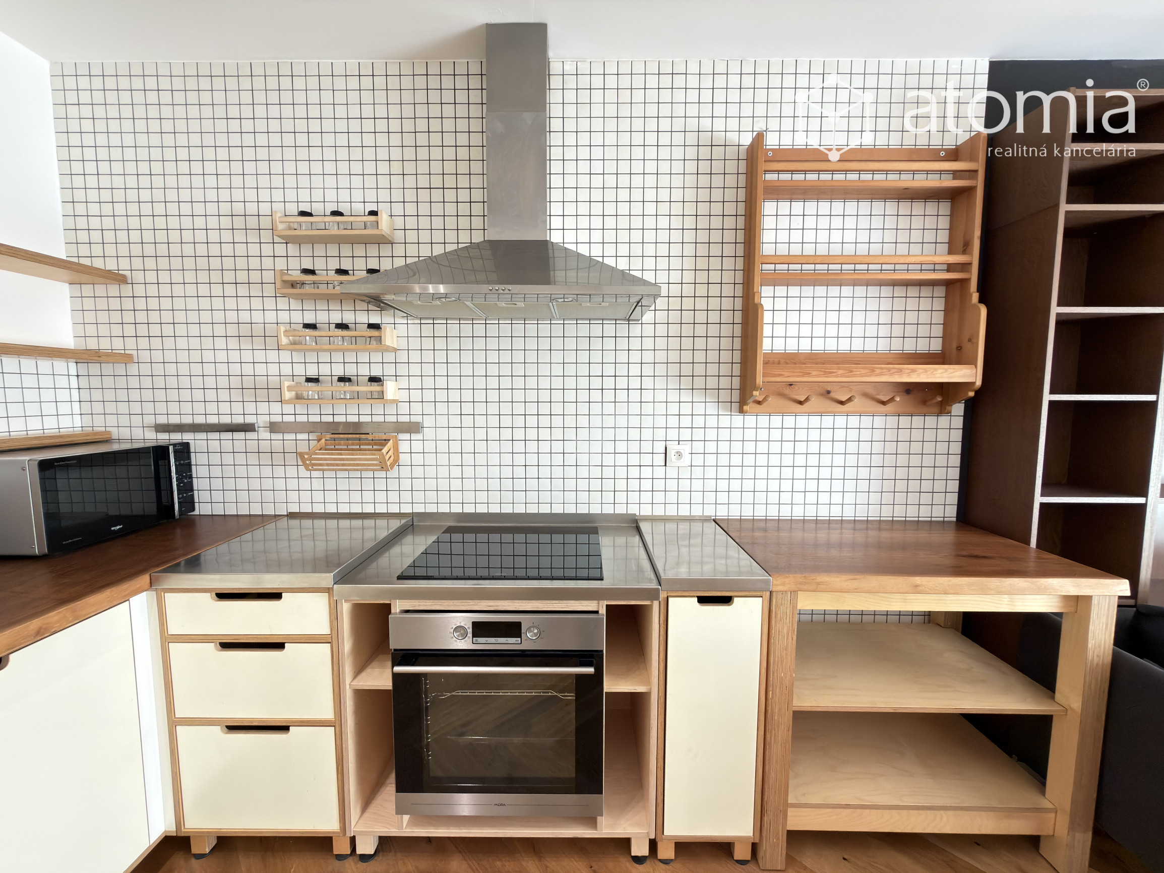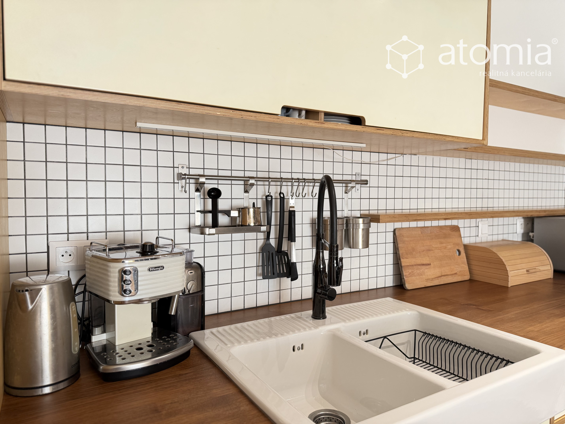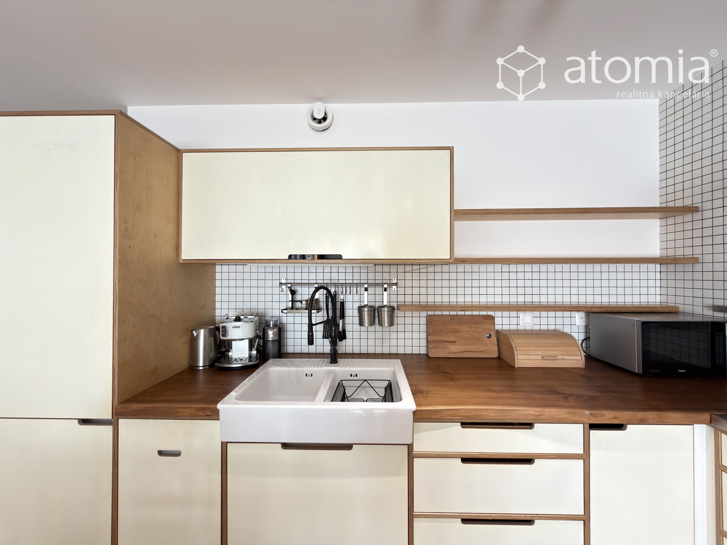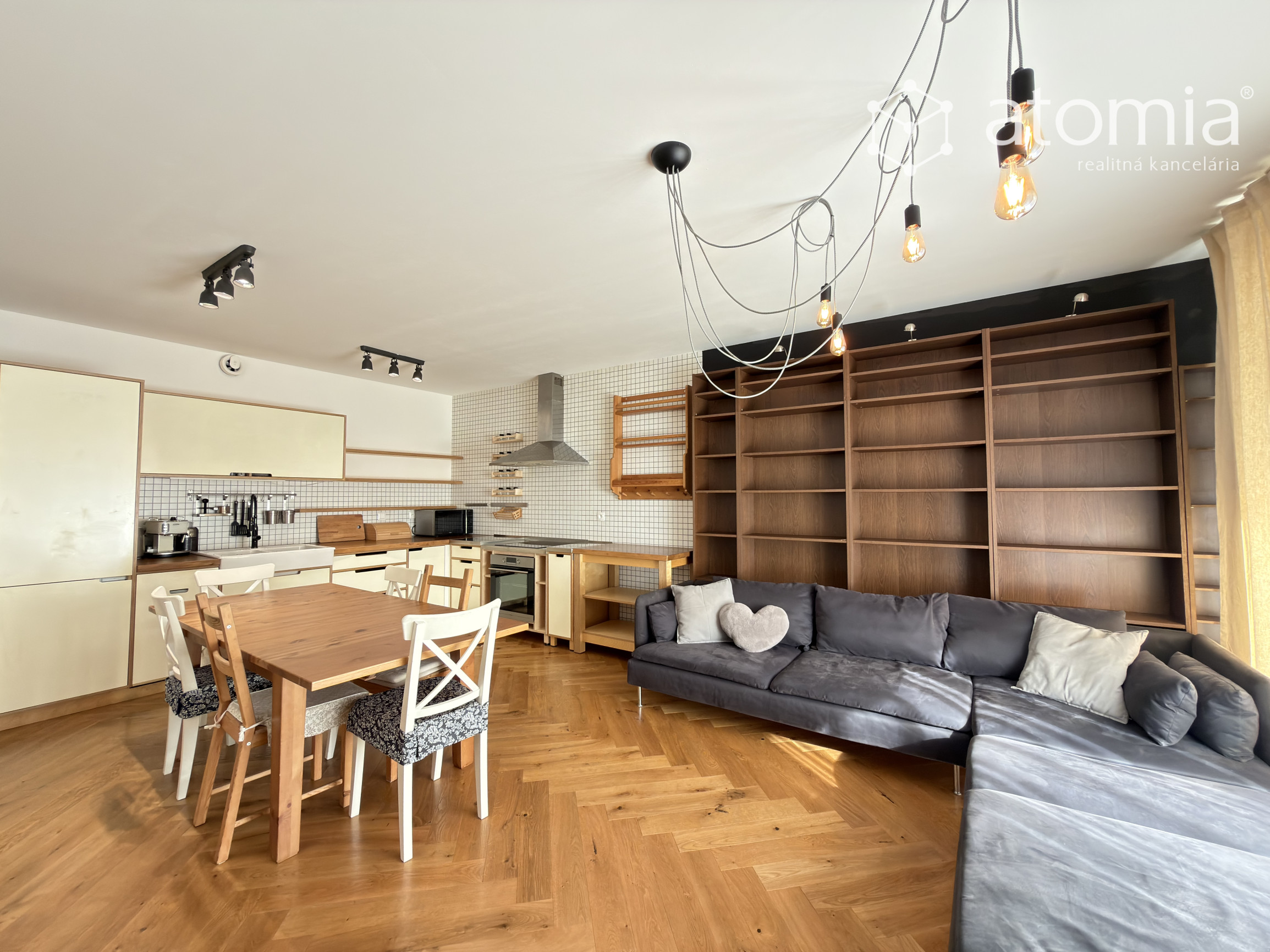 Byt je plne zariadený kvalitným nábytkom a spotrebičmi. K dispozícii je moderná kuchynská linka s rúrou, indukčnou varnou doskou, mikrovlnnou rúrou, kávovarom a dostatkom úložného priestoru.