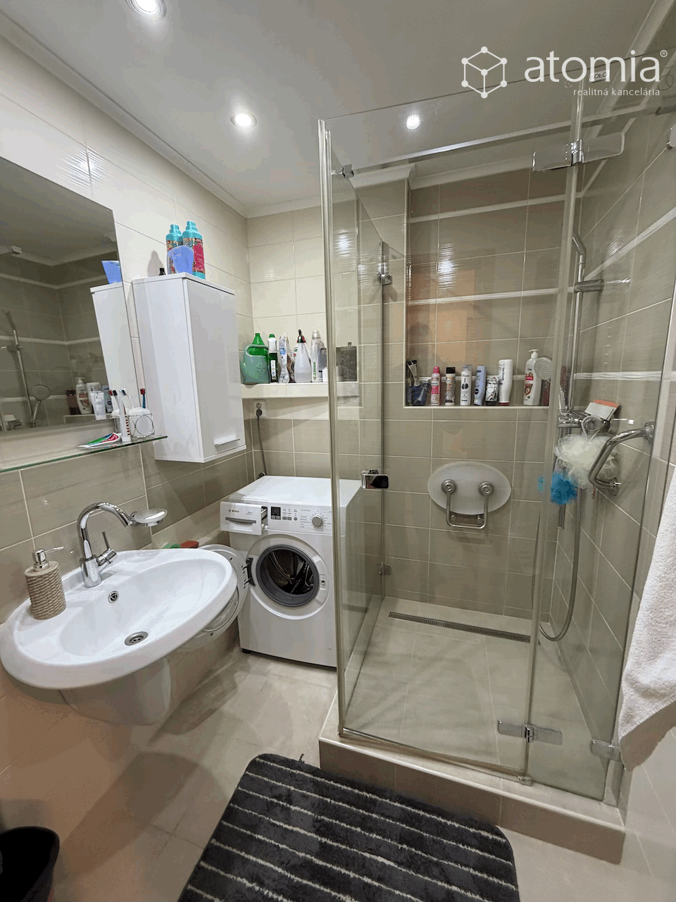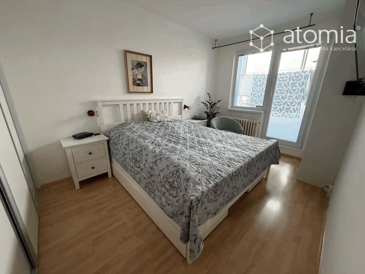 Dispozične je byt rozdelený na 3 nepriechodné izby, kuchyňu, kúpeľňu a WC. V kúpeľni sa nachádza sprchový kút. Byt prešiel rekonštrukciou - murované jadro, sanita, plastové okná, plávajúce podlahy, kuchynská linka so spotrebičmi aj s umývačkou riadu, bezpečnostné vchodové dvere a i. V byte je taktiež KLIMATIZÁCIA.