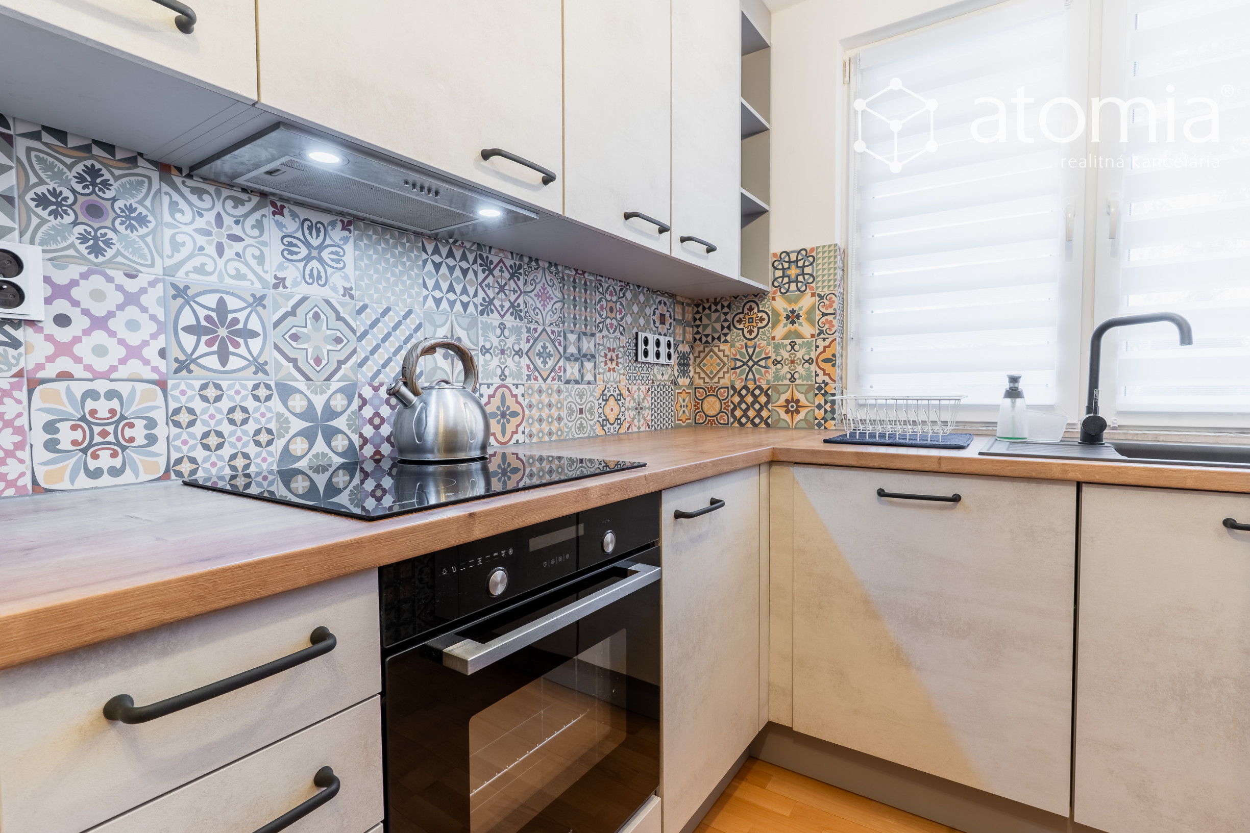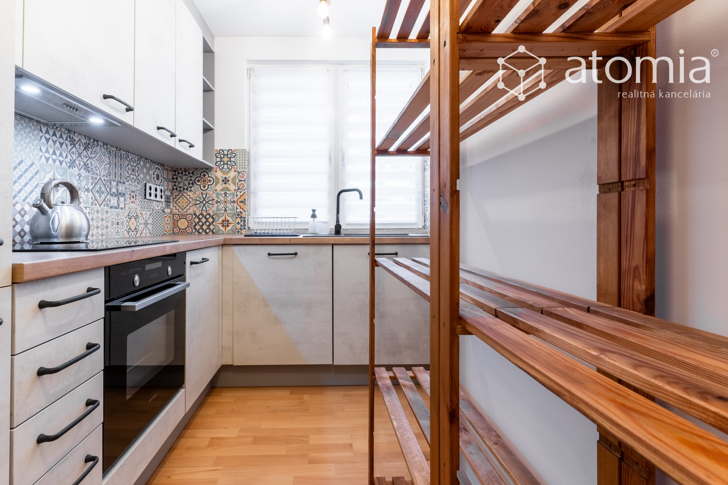 - Kuchyňa: kompletne zariadená (indukcia, rúra, umývačka riadu)