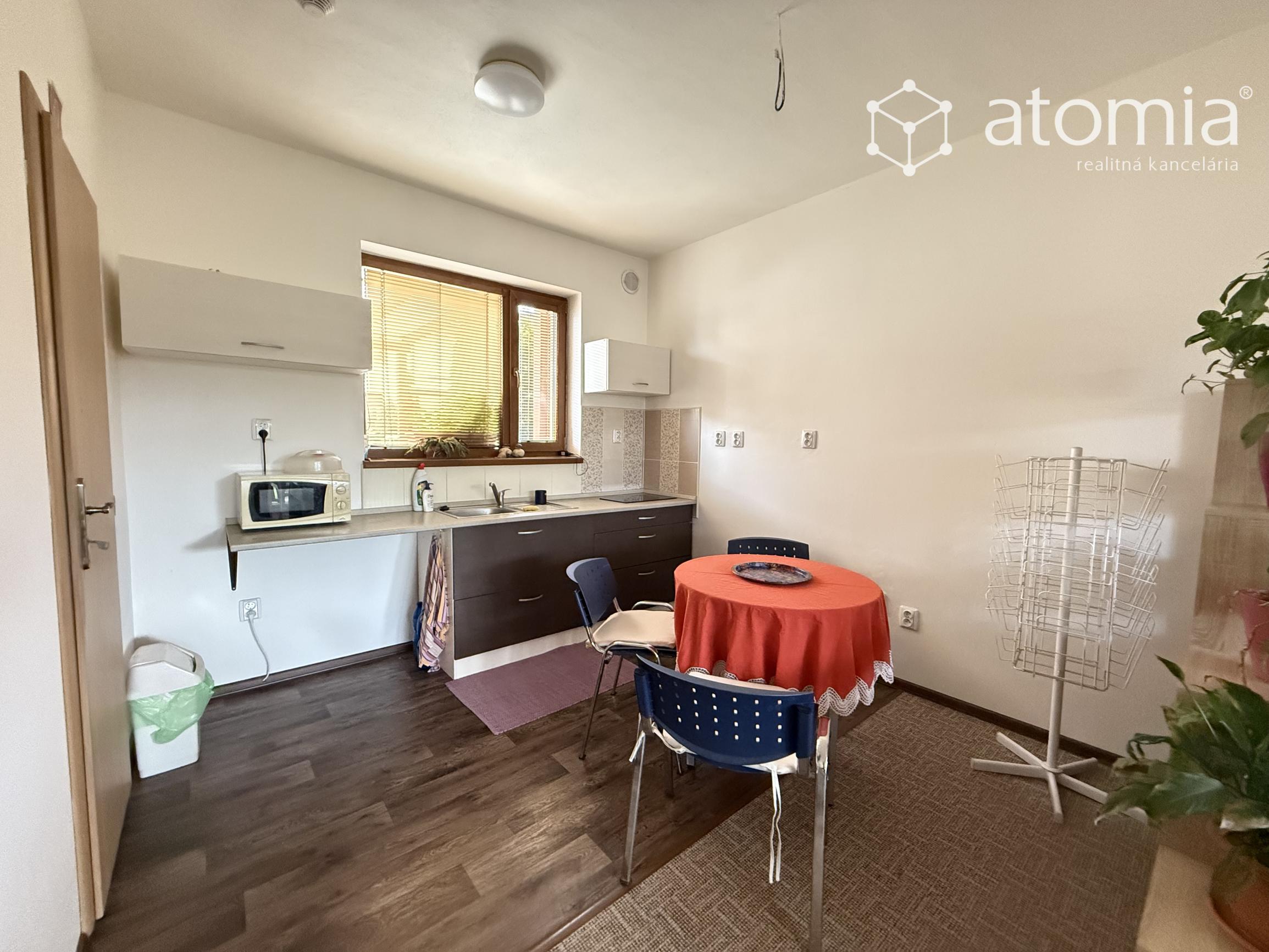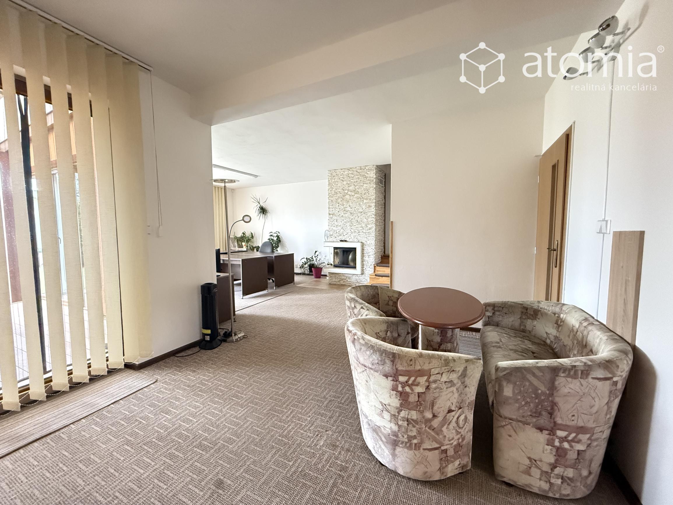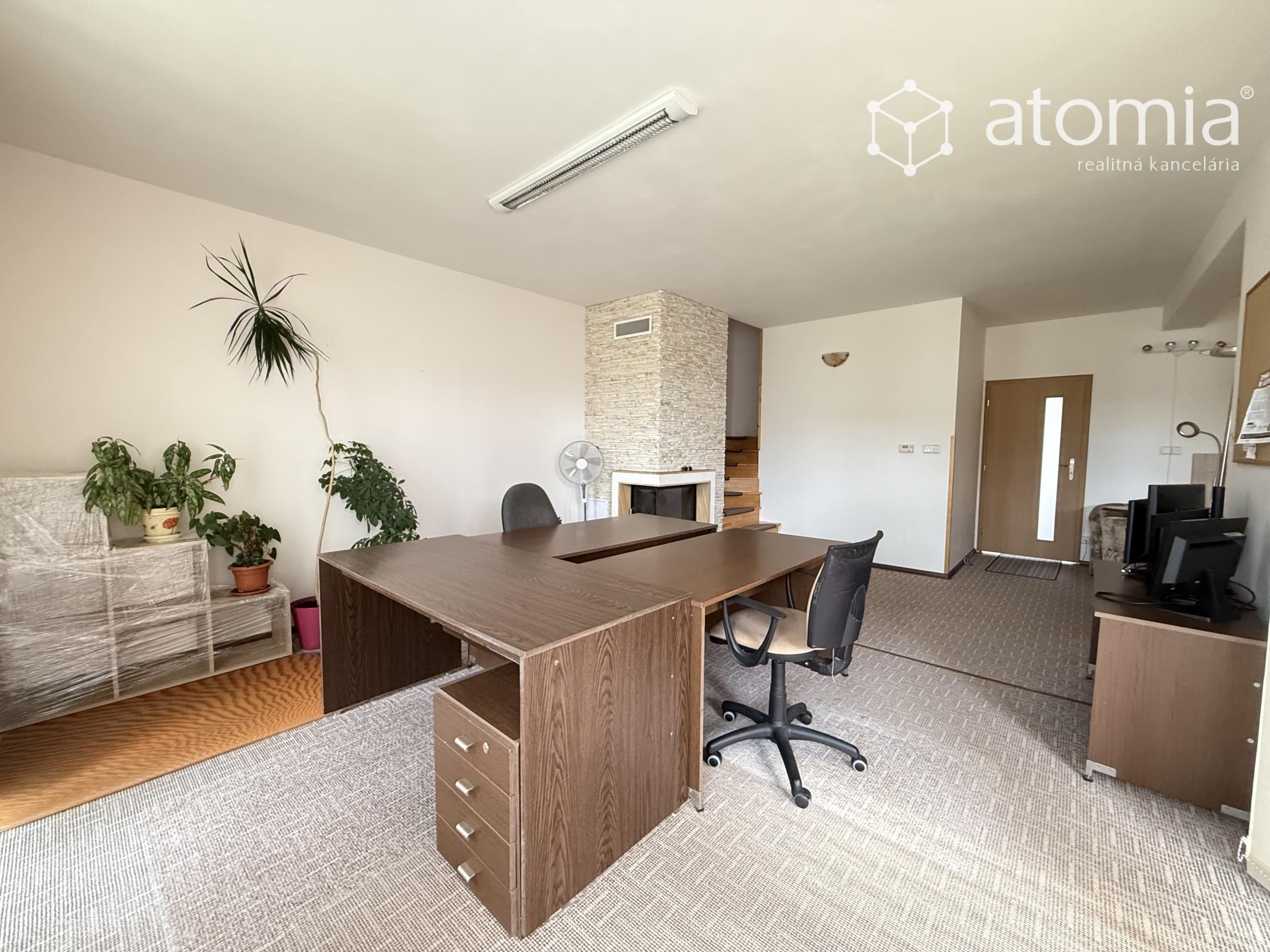 - Prízemie: priestranná obývacia izba s krbom, moderná kuchyňa, komora, samostatná toaleta