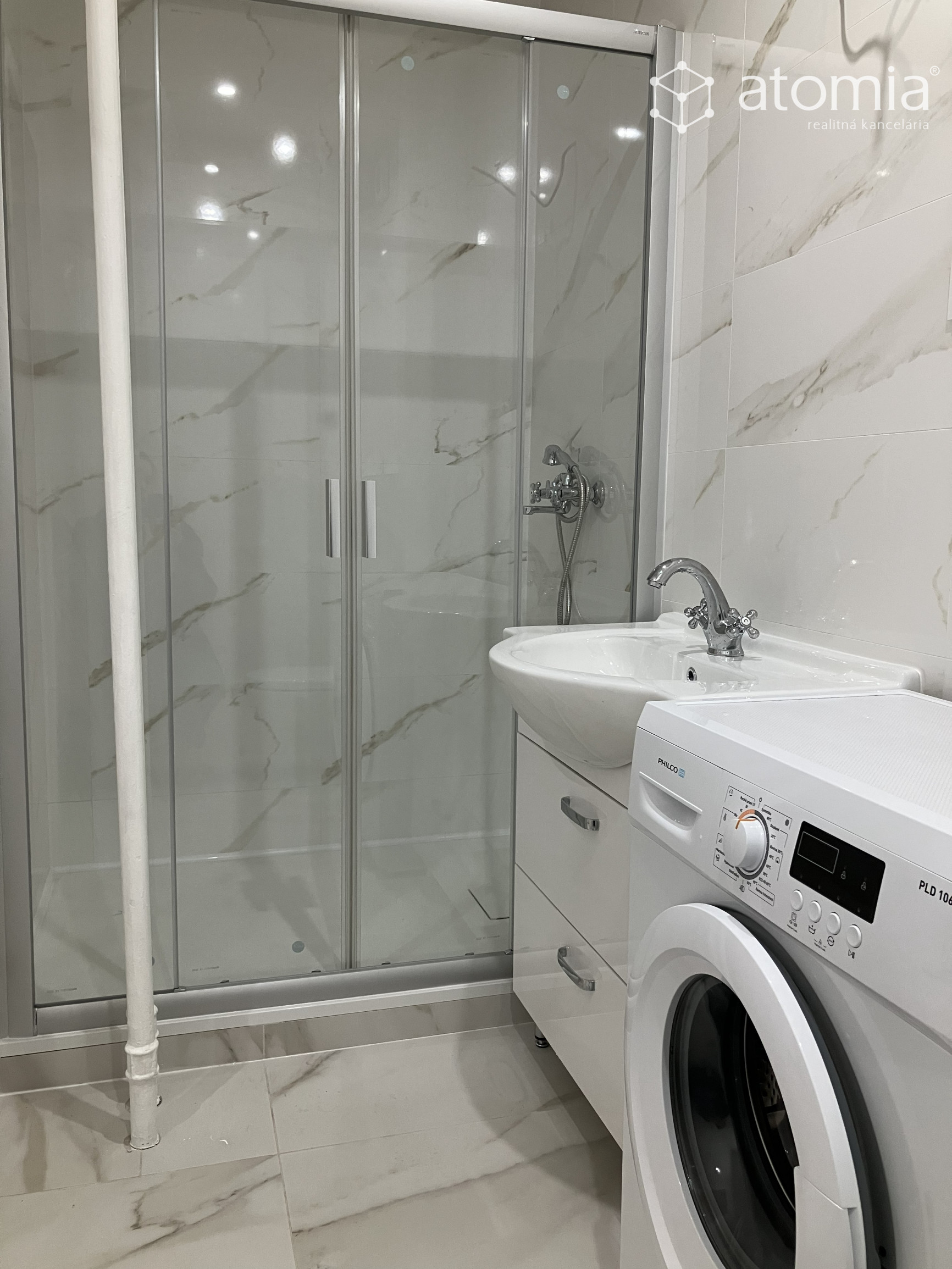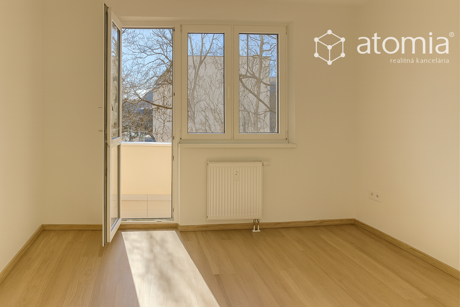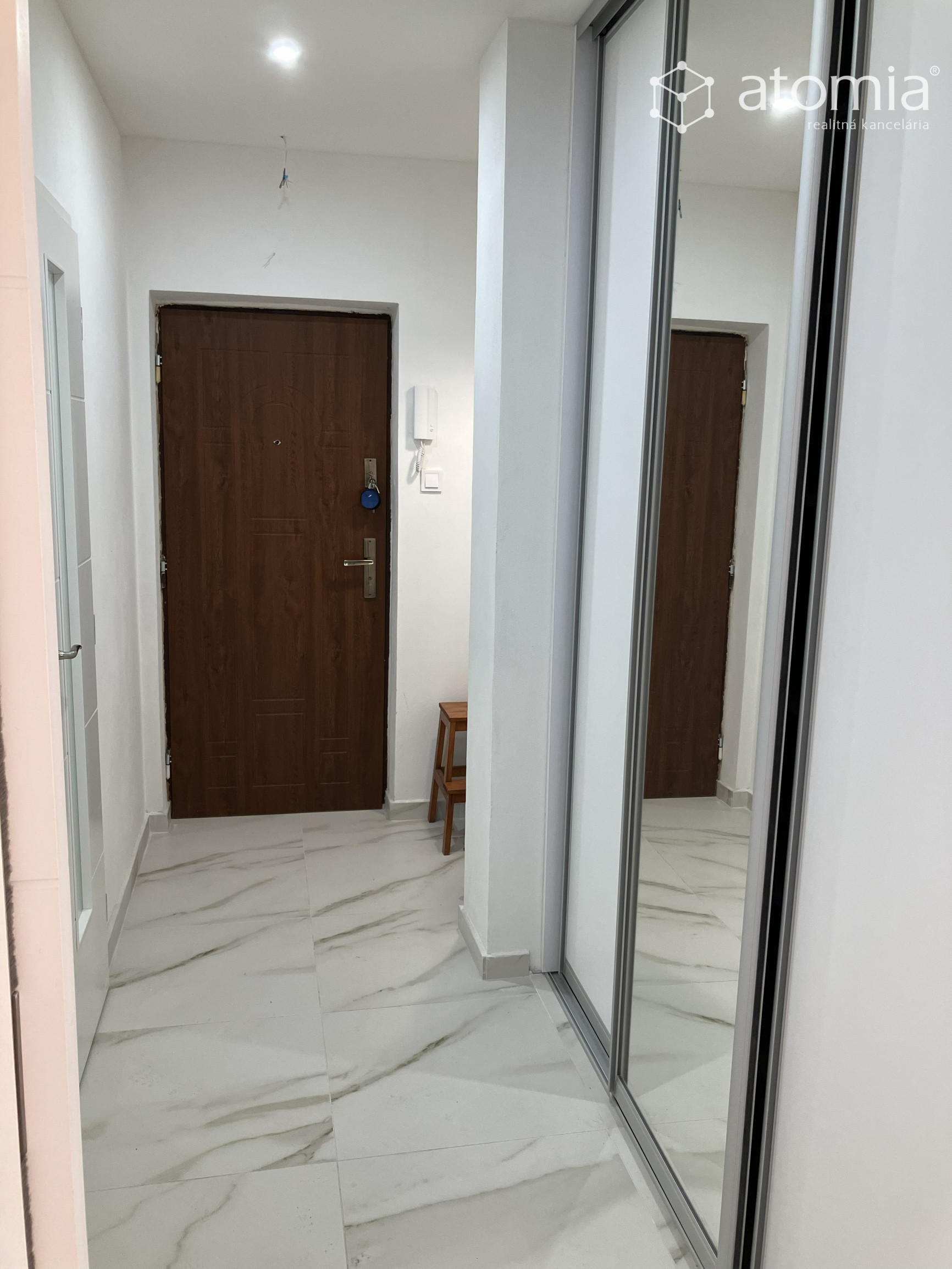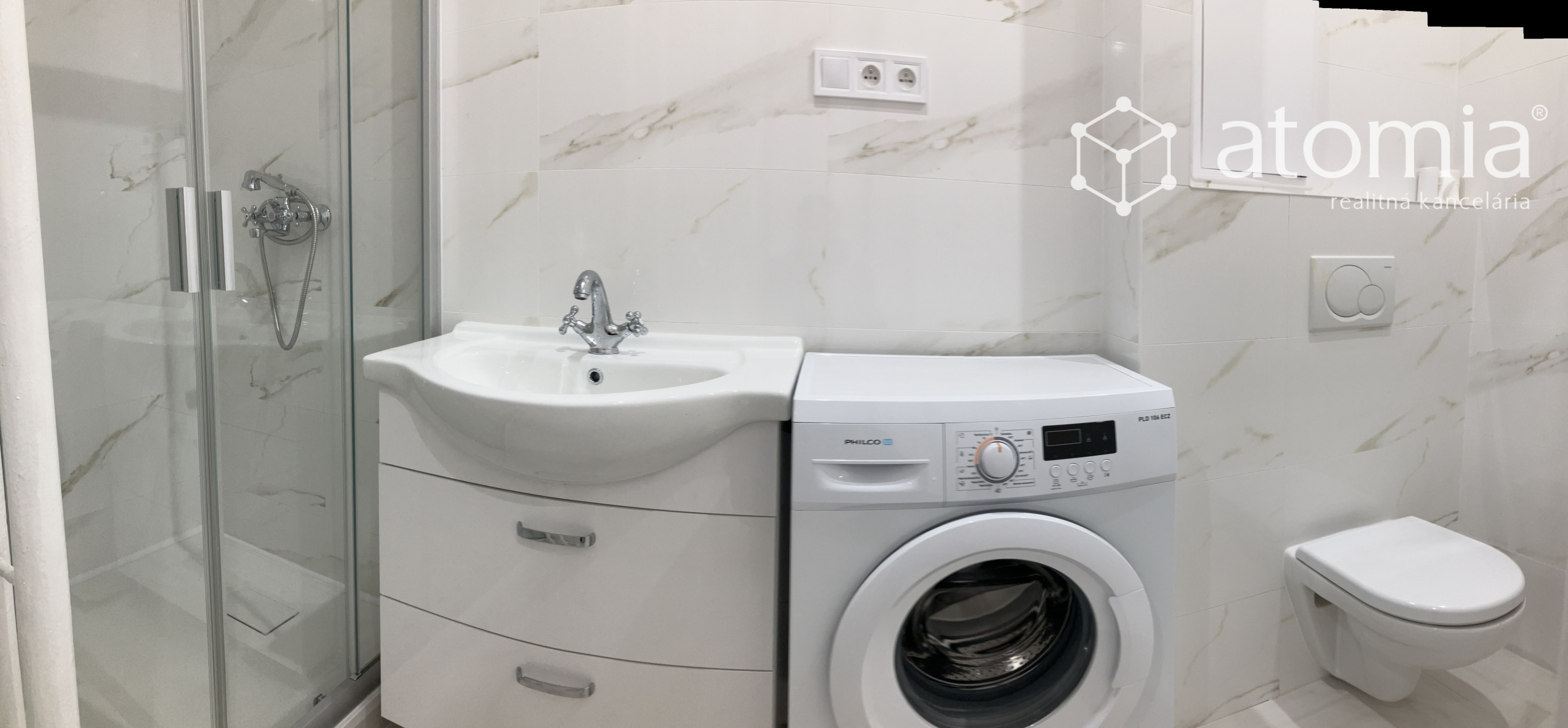 Byt o veľkosti 54m2 sa nachádza na 2.np panelového bytového domu bez výťahu, je po úplnej modernej prerábke v neutrálnych farbách, ponúka sa na prenájom nezariadený, disponuje vstavanými spotrebičmi v kuchyni (chladnička, mraznička, umývačka riadu, sklo-keramická varná doska, el. rúra), obývacia izba je od kuchyne funkčne oddelená raňajkovým pultom. Byt ďalej disponuje dvomi nepriechodnými izbami, loggiou (cca 3m2), na chodbe je priestranná vstavaná skriňa a priestor v kúpeľni je plne využitý na veľký sprchový kút, umývadlo s úložnými zásuvkami, práčku aj toaletu. K bytu prislúcha aj pivnica v suteréne bytového domu.