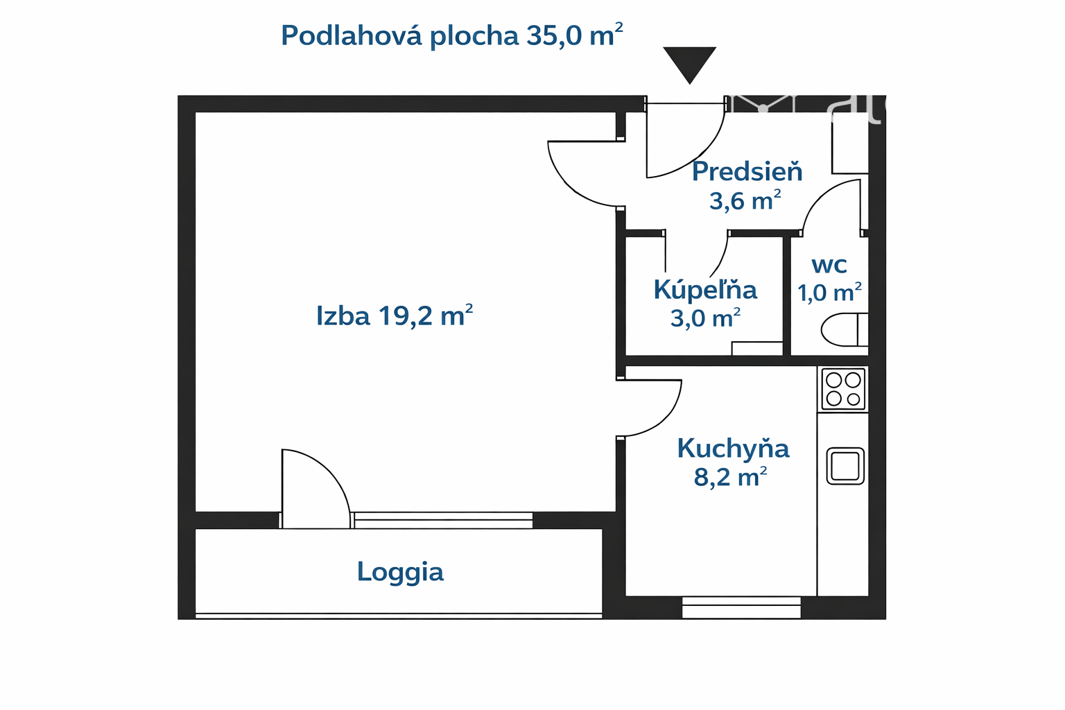 Dispozícia bytu aktuálne pozostáva z priestrannej izby s výstupom na zasklenú loggiu, samostatnej kuchyne, kúpeľne a samostatného WC. Výhodou je možnosť úpravy dispozície na obývačku spojenú s kuchyňou a samostatnú spálňu.