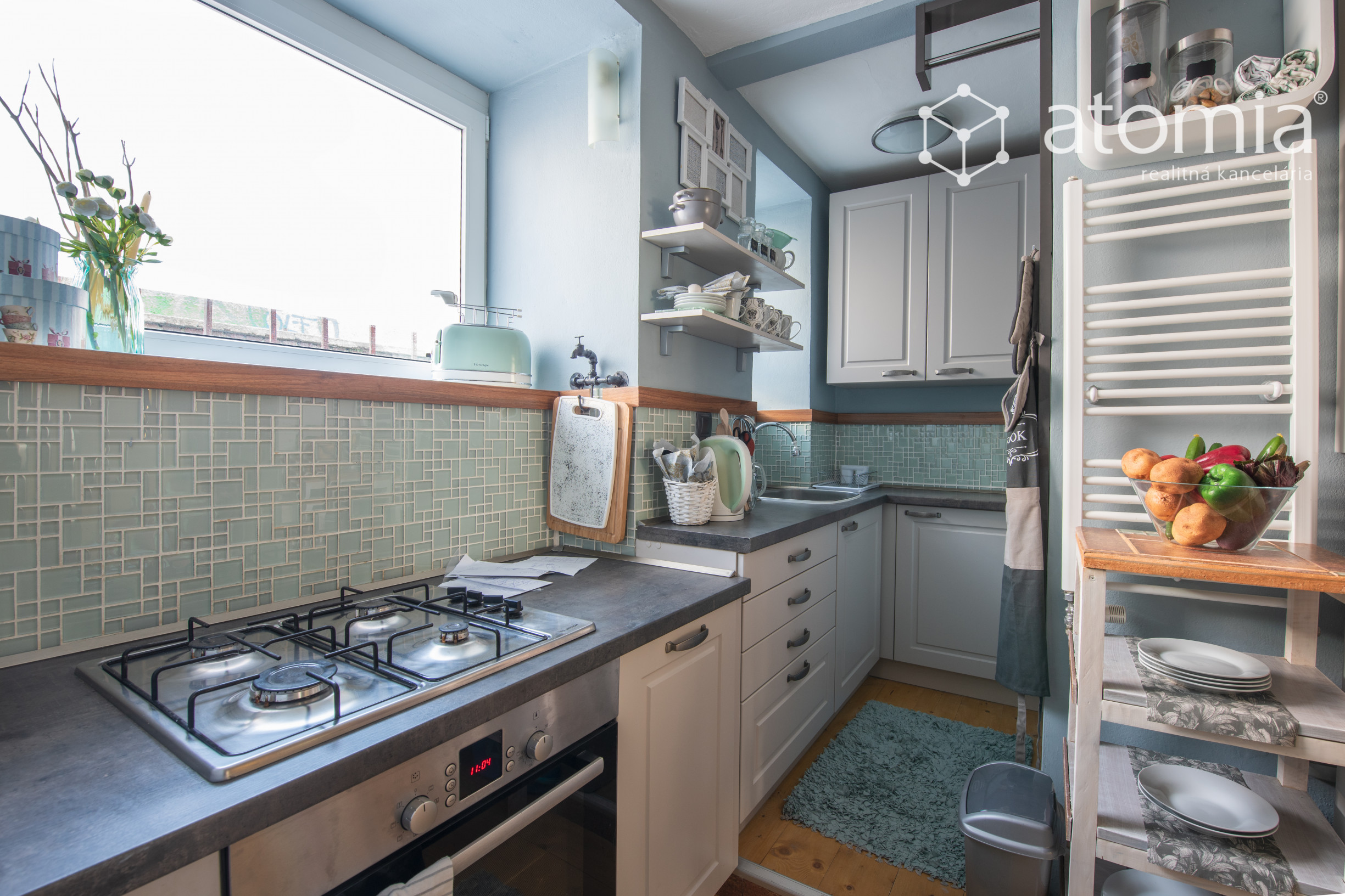 Vo Vašej kuchyni sa nemusíte báť, že sa po namáhavom celom dni ešte nabeháte...stačí pár krokov a všetko máte po ruke na prípravu dobrej večere. V kuchyni sa nachádza kuchynská linka so vstavanými spotrebičmi - plynová varná doska, elektrická rúra, umývačka riadu. V kuchynskej linke je osadený nerezový drez s pákovou batériou.