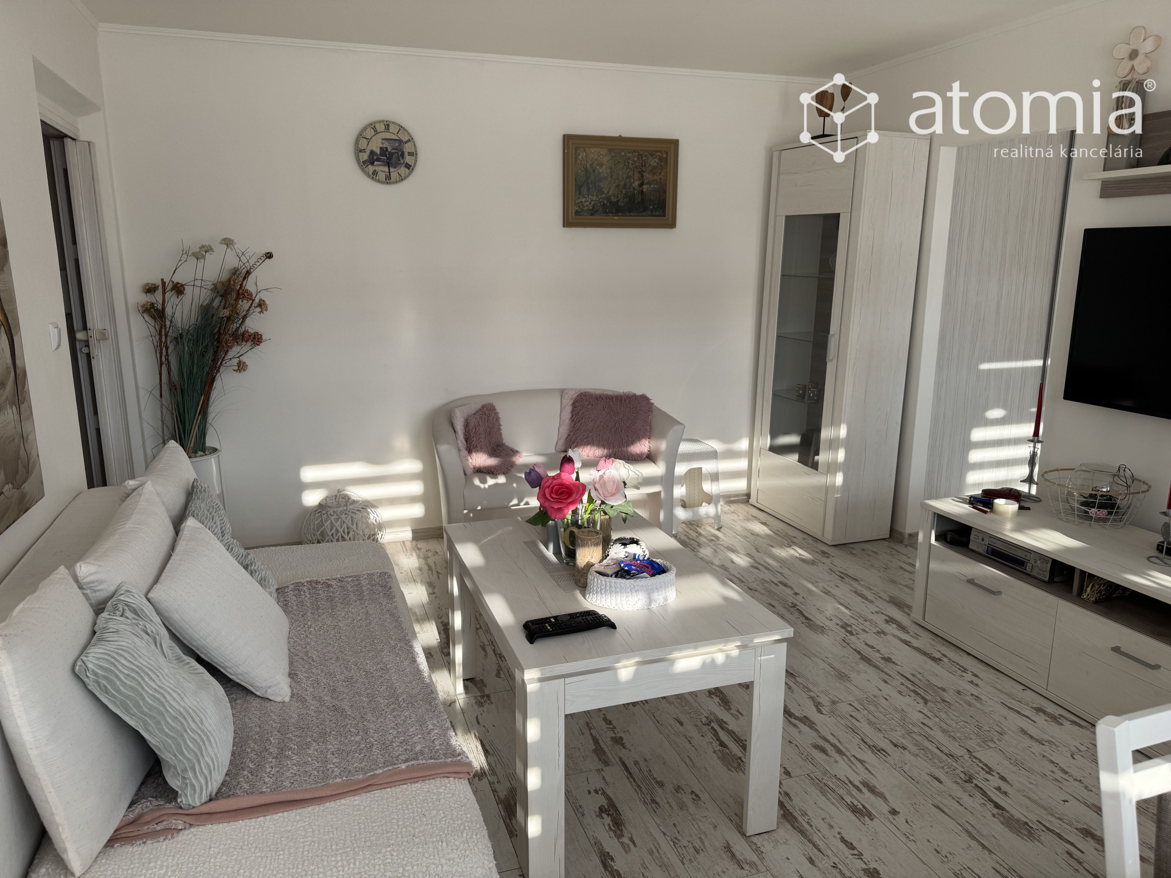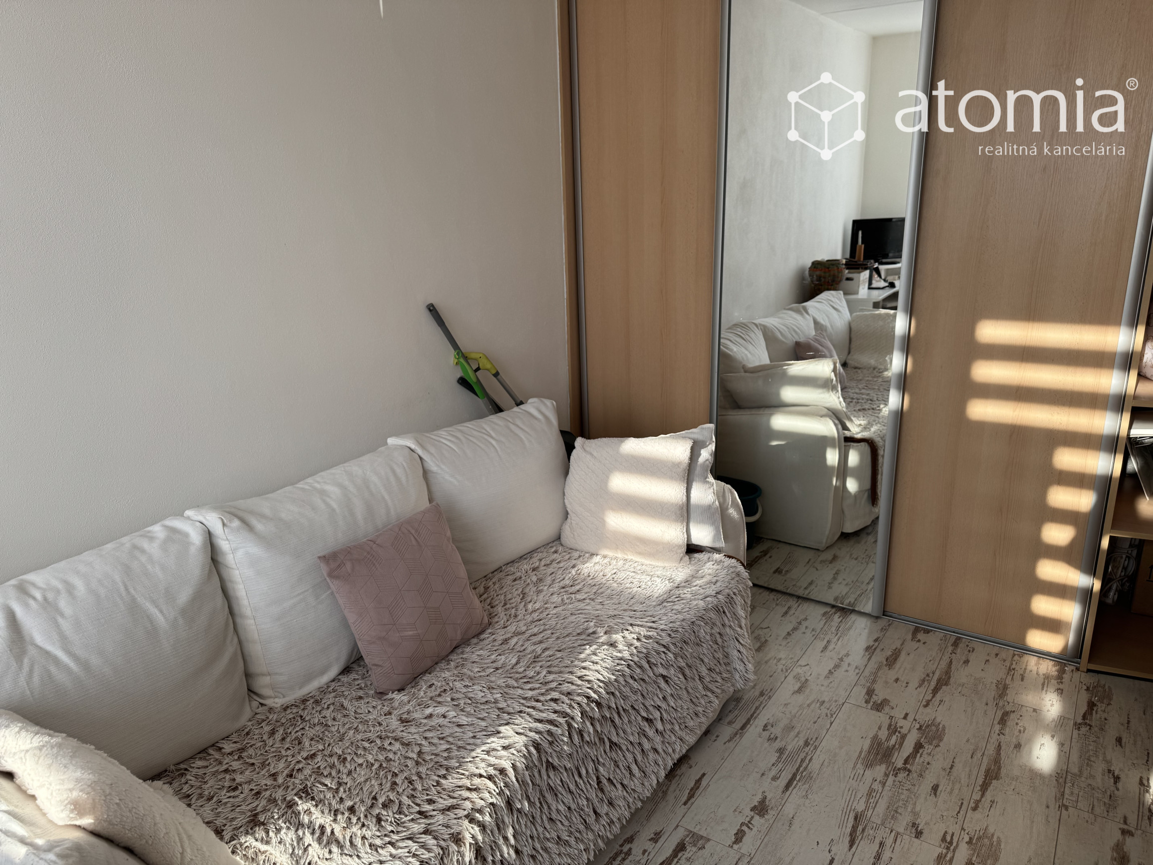 Dispozícia bytu je praktická a funkčná – pozostáva z dvoch nepriechodných izieb, priestrannej obývačky, samostatnej kuchyne, kúpeľne s rohovou vaňou a WC. Z izby je aj výstup na loggiu. Byt prešiel rekonštrukciou, v rámci ktorej boli realizované nové jadro, sanita, podlahy, plastové okná, dvere a moderná kuchynská linka so spotrebičmi.