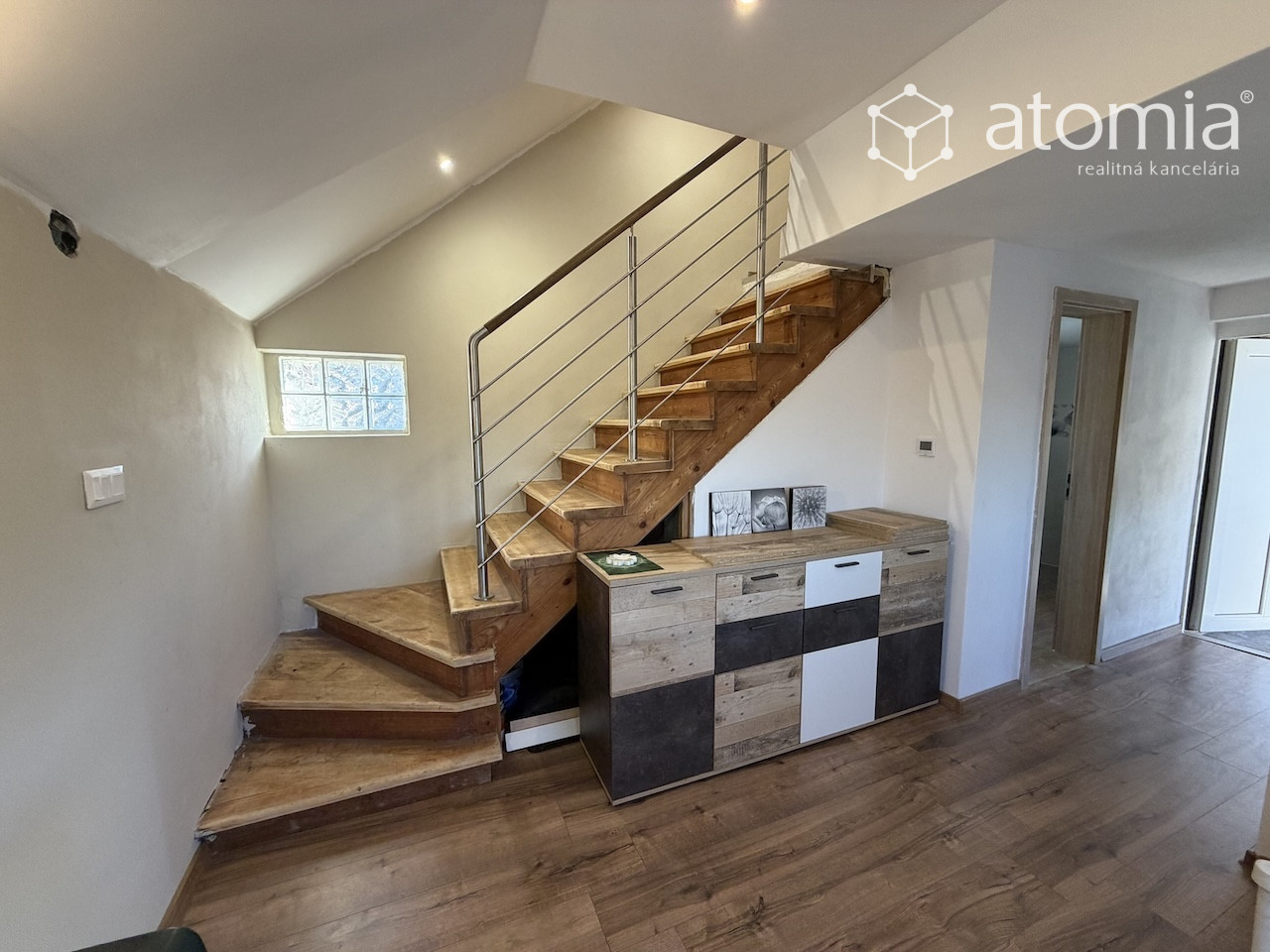 Na prvom podlaží je kuchynka, obývacia izba, kúpeľňa s WC. Na poschodí je 1 izba. V suterénnej časti sa nachádzajú odkladacie priestory. V kúpeľni je umývadlo a sprchovací kút. Dom je napojený na elektrinu. Na prízemí v obývacej izbe je piecka na vykurovanie chaty a taktiež podlahové elektrické vykurovanie na prízemí, v kúpeľni aj na poschodí. Možnosť urobiť na pozemku studňu s pitnou vodou, momentálne do chaty nie je pripojená voda ale je urobená predpríprava na pripojenie. Na pozemku je možné vyvŕtať studňu.
